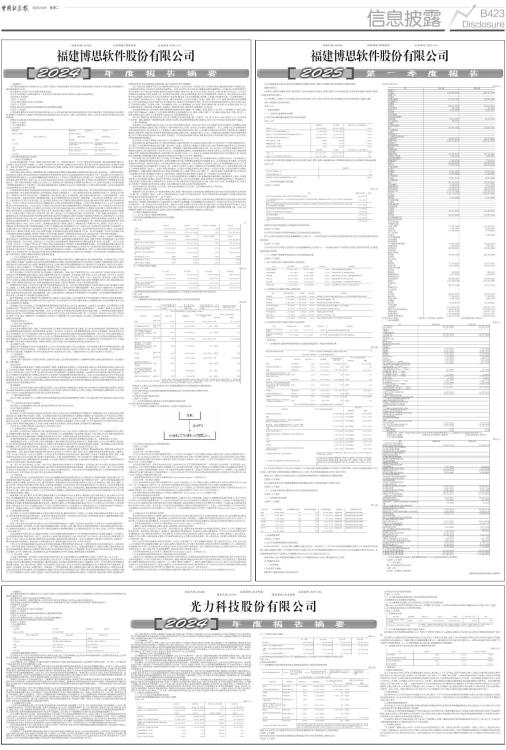 证券代码:300525 证券简称:博思软件 公告编号:2025-014 本公司及董事会全体成员保证信息披露的内容真实、准确、完整,没有虚假记载、误导性陈述或重大遗漏。 重要内容提示: 1.董事会、监事会及董事、监事、高级管理人员保证季度报告的真实、准确、完整,不存在虚假记载、误导性陈述或重大遗漏,并承担个别和连带的法律责任。 2.公司负责人、主管会计工作负责人及会计机构负责人(会计主管人员)声明:保证季度报告中财务信息的真实、准确、完整。 3.第一季度报告是否经过审计 □是 √否 一、主要财务数据 (一) 主要会计数据和财务指标 公司是否需追溯调整或重述以前年度会计数据 □是 √否 ■ 公司报告期末至季度报告披露日股本是否因发行新股、增发、配股、股权激励行权、回购等原因发生变化且影响所有者权益金额 √是 □否 ■ (二) 非经常性损益项目和金额 √适用 □不适用 单位:元 ■ 其他符合非经常性损益定义的损益项目的具体情况 □适用 √不适用 公司不存在其他符合非经常性损益定义的损益项目的具体情况。 将《公开发行证券的公司信息披露解释性公告第1号一一非经常性损益》中列举的非经常性损益项目界定为经常性损益项目的情况说明 □适用 √不适用 公司不存在将《公开发行证券的公司信息披露解释性公告第1号一一非经常性损益》中列举的非经常性损益项目界定为经常性损益的项目的情形。 (三) 主要会计数据和财务指标发生变动的情况及原因 √适用 □不适用 (一)资产负债表项目大幅变动情况与原因说明 ■ (二)利润表项目大幅变动情况与原因说明 ■ (三)现金流量表项目大幅变动情况与原因说明 ■ 二、股东信息 (一) 普通股股东总数和表决权恢复的优先股股东数量及前十名股东持股情况表 单位:股 ■ 注:公司前10名股东中不包含公司回购专户,公司前10名无限售流通股股东中回购专户原排名第7,共持有无限售流通股6,817,900股,占报告期末无限售流通股总股数的1.10%,在前10名无限售流通股股东名单中未纳入列示。 持股5%以上股东、前10名股东及前10名无限售流通股股东参与转融通业务出借股份情况 □适用 √不适用 前10名股东及前10名无限售流通股股东因转融通出借/归还原因导致较上期发生变化 □适用 √不适用 (二) 公司优先股股东总数及前10名优先股股东持股情况表 □适用 √不适用 (三) 限售股份变动情况 √适用 □不适用 单位:股 ■ 三、其他重要事项 √适用 □不适用 1、2021年股票期权激励计划进展情况 2024年10月28日,公司召开第五届董事会第五次会议,审议通过了《关于2021年股票期权激励计划第三个行权期可行权的议案》,确认本激励计划第三个行权期行权条件已成就,本次可行权的股票期权数量为212.7477万份,可行权的激励对象共计349名。本次股票期权采用自主行权模式,行权期限为2024年11月15日至2025年9月12日。 本报告期内,2021年股票期权激励计划第三个行权期行权500,523份,增加股份500,523股。 四、季度财务报表 (一) 财务报表 1、合并资产负债表 编制单位:福建博思软件股份有限公司 2025年03月31日 单位:元 ■ 法定代表人:陈航 主管会计工作负责人:林伟平 会计机构负责人:林伟平 2、合并利润表 单位:元 ■ 本期发生同一控制下企业合并的,被合并方在合并前实现的净利润为:元,上期被合并方实现的净利润为:元。 法定代表人:陈航 主管会计工作负责人:林伟平 会计机构负责人:林伟平 3、合并现金流量表 单位:元 ■ (二) 2025年起首次执行新会计准则调整首次执行当年年初财务报表相关项目情况 □适用 √不适用 (三) 审计报告 第一季度报告是否经过审计 □是 √否 公司第一季度报告未经审计。 福建博思软件股份有限公司董事会