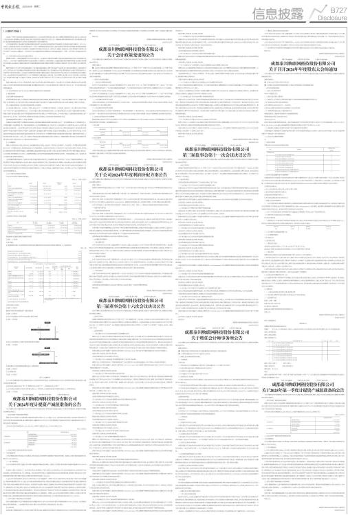 成都秦川物联网科技股份有限公司 关于召开2024年年度股东大会的通知 |