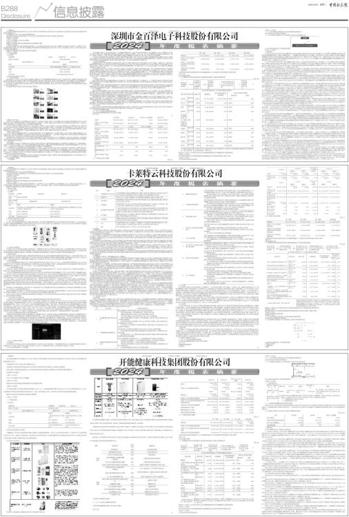 证券代码:300272 证券简称:开能健康 公告编号:2025-017 债券代码:123206 债券简称:开能转债 开能健康科技集团股份有限公司 一、重要提示 本年度报告摘要来自年度报告全文,为全面了解本公司的经营成果、财务状况及未来发展规划,投资者应当到证监会指定媒体仔细阅读年度报告全文。 所有董事均已出席了审议本报告的董事会会议。 天职国际会计师事务所(特殊普通合伙)对本年度公司财务报告的审计意见为:标准的无保留意见。 本报告期会计师事务所变更情况:公司本年度会计师事务所由变更为天职国际会计师事务所(特殊普通合伙)。 非标准审计意见提示 □适用 √不适用 公司上市时未盈利且目前未实现盈利 □适用 √不适用 董事会审议的报告期利润分配预案或公积金转增股本预案 √适用 □不适用 公司经本次董事会审议通过的利润分配预案为:以577,217,911股扣除回购专用账户库存股12,143,905 股后的股本565,074,006股为基数,向全体股东每10股派发现金红利0.4元(含税),送红股0股(含税),以资本公积金向全体股东每10股转增0股。 董事会决议通过的本报告期优先股利润分配预案 □适用 √不适用 二、公司基本情况 1、公司简介 ■ 2、报告期主要业务或产品简介 开能健康是一家全球人居水处理综合解决方案及产品和服务的提供商。2001年,公司在国内率先提出了“全屋净水”的人居用水理念,并自设立以来一直致力于全屋净水机、全屋软水机、商用净化饮水机、RO膜反渗透净水机、多路控制阀、复合材料压力容器、膜元件等人居水处理产品及核心部件的研发、制造、销售与服务。 公司主要产品介绍如下: ■ ■ 各类产品之过滤原理、过滤精度、效用、及应用场景等介绍汇总: ■ 针对各种场所健康用水需求,公司提供包括居家用水解决方案、商务用水解决方案、公共设施用水解决方案及其他特殊条件定制用水解决方案等,为客户提供现场考察、方案设计、设备安装调试和售后服务等一系列服务。 开能健康全系列水处理产品及零部件产品的主要生产基地位于上海浦东、浙江慈溪、江苏宜兴等地,另外在北美地区设有部件组装产线。多年以来,公司深耕水处理产品领域,产品涵盖8个大类、83个系列、1700多个品种规格,远销100多个国家和地区。报告期内公司主营业务未发生重大变化。 报告期内,公司凭借持续不断在绿色生产的努力以及卓越的产品创新等,获得了政府部门、行业协会等授予的多项嘉奖,是对公司践行可持续发展、持续创新创造等成果的肯定。 ■ 3、主要会计数据和财务指标 (1) 近三年主要会计数据和财务指标 公司是否需追溯调整或重述以前年度会计数据 □是 √否 元 ■ (2) 分季度主要会计数据 单位:元 ■ 上述财务指标或其加总数是否与公司已披露季度报告、半年度报告相关财务指标存在重大差异 □是 √否 4、股本及股东情况 (1) 普通股股东和表决权恢复的优先股股东数量及前10名股东持股情况表 单位:股 ■ 持股5%以上股东、前10名股东及前10名无限售流通股股东参与转融通业务出借股份情况 □适用 √不适用 前10名股东及前10名无限售流通股股东因转融通出借/归还原因导致较上期发生变化 □适用 √不适用 公司是否具有表决权差异安排 □适用 √不适用 (2) 公司优先股股东总数及前10名优先股股东持股情况表 公司报告期无优先股股东持股情况。 (3) 以方框图形式披露公司与实际控制人之间的产权及控制关系 ■ 5、在年度报告批准报出日存续的债券情况 √适用 □不适用 (1) 债券基本信息 ■ (2) 公司债券最新跟踪评级及评级变化情况 2024年6月3日,中诚信国际信用评级有限责任公司对公司主体及公司对公司存续期内的债券进行跟踪评级,审定公司主体信用等级为A+,评级展望为稳定,债券信用等级为A+。具体内容详见2024年6月4日披露的《开能健康科技集团股份有限公司2024年度跟踪评级报告》。 (3) 截至报告期末公司近2年的主要会计数据和财务指标 单位:万元 ■ 三、重要事项 1、公司回购股份及员工持股计划实施情况 (1)2023年11月20日,公司召开第六届董事会第七次会议及第六届监事会第七次会议审议通过2023年员工持股计划相关议案,并经公司2023年12月6日召开的2023年第二次临时股东大会通过。2023 年 12 月 21 日,公司以非交易过户方式将10,370,000 股回购股份过户至“开能健康科技集团股份有限公司一2023 年员工持股计划”。受让价格为4.31元/股,锁定期自2023 年 12 月 21 日起至2024年12月20日。 (2)2024年2月4日,公司召开第六届董事会第十次会议及第六届监事会第十次会议审议通过《关于回购股份方案的议案》,拟使用自有资金不超过5,000万元且不低于2,500万元,回购单价不超过6元/股,回购股份用于员工持股计划或者股权激励。 (3)2024年5月21日,公司披露《关于2023年年度权益分派实施后调整回购股份价格上限的公告》(公告编号:2024-050),因公司实施向全体股东每10股派发现金红利1元人民币(含税)的2023年度权益分派方案,根据《开能健康科技集团股份有限公司回购股份报告书》的相关规定,本次回购股份价格由不超过6元/股(含)调整为不超过5.90元/股(含)。调整后的回购价格自2024年5月28日(除权除息日)起生效。 (4)2024年7月17日,公司召开的第六届董事会第十五次会议审议通过《关于变更回购公司股份用途的议案》,将回购股份用途由“用于
