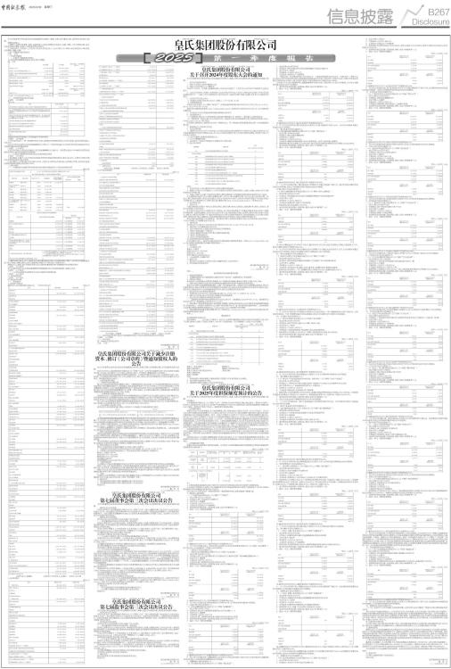 证券代码:002329 证券简称:皇氏集团 公告编号:2025-037 皇氏集团股份有限公司 本公司及董事会全体成员保证信息披露的内容真实、准确、完整,没有虚假记载、误导性陈述或重大遗漏。 重要内容提示: 1、董事会、监事会及董事、监事、高级管理人员保证季度报告的真实、准确、完整,不存在虚假记载、误导性陈述或重大遗漏,并承担个别和连带的法律责任。 2、公司负责人、主管会计工作负责人及会计机构负责人(会计主管人员)声明:保证季度报告中财务信息的真实、准确、完整。 3、第一季度报告是否经审计 □是 √否 一、主要财务数据 (一) 主要会计数据和财务指标 公司是否需追溯调整或重述以前年度会计数据 (是 √否 ■ (二) 非经常性损益项目和金额 √适用 □不适用 单位:元 ■ 其他符合非经常性损益定义的损益项目的具体情况 √适用 □不适用 子公司皇氏阳光(广西)新能源有限公司转让南通根祚新能源有限公司100%股权,取得投资收益25,706.27元。 将《公开发行证券的公司信息披露解释性公告第1号一非经常性损益》中列举的非经常性损益项目界定为经常性损益项目的情况说明 □适用 √不适用 公司不存在将《公开发行证券的公司信息披露解释性公告第1号一非经常性损益》中列举的非经常性损益项目界定为经常性损益的项目的情形。 (三) 主要会计数据和财务指标发生变动的情况及原因 √适用 □不适用 1、报告期内,归属于上市公司股东的扣除非经常性损益的净利润同比增长136.46%,主要为公司报告期内非经常性损益同比减少所致。 2、报告期内,公司营业收入同比减少6.90%,主要为公司贸易业务营业收入有所减少所致,而乳制品及食品营收保持增长趋势,同比增长3.09%。 二、股东信息 (一) 普通股股东总数和表决权恢复的优先股股东数量及前十名股东持股情况表 单位:股 ■ 注:截至本报告期末,前十名股东存在皇氏集团股份有限公司回购专用证券账户,持有的普通股数量为20,640,630股,持股比例为2.38%,根据规定回购专户不纳入前十名股东列示。 持股5%以上股东、前10名股东及前10名无限售流通股股东参与转融通业务出借股份情况 □适用 √不适用 前10名股东及前10名无限售流通股股东因转融通出借/归还原因导致较上期发生变化 □适用 √不适用 (二) 公司优先股股东总数及前10名优先股股东持股情况表 □适用 √不适用 三、其他重要事项 □适用 √不适用 四、季度财务报表 (一) 财务报表 1、合并资产负债表 编制单位:皇氏集团股份有限公司 2025年3月31日单位:元 ■ 法定代表人:黄嘉棣 主管会计工作负责人:吕德伟 负责人:朱夕清 2、合并利润表 单位:元 ■ ■ 法定代表人:黄嘉棣 主管会计工作负责人:吕德伟 负责人:朱夕清 3、合并现金流量表 单位:元 ■ 法定代表人:黄嘉棣 主管会计工作负责人:吕德伟 负责人:朱夕清 (二) 2025年起首次执行新会计准则调整首次执行当年年初财务报表相关项目情况 □适用 √不适用 (三) 审计报告 第一季度报告是否经过审计 □是 √否 皇氏集团股份有限公司 董 事 会 二〇二五年四月三十日 证券代码:002329 证券简称:皇氏集团 公告编号:2025–040 皇氏集团股份有限公司关于减少注册 资本、修订《公司章程》暨通知债权人的公告 本公司及董事会全体成员保证信息披露的内容真实、准确、完整,没有虚假记载、误导性陈述或重大遗漏。 2025年4月29日,皇氏集团股份有限公司(以下简称“公司”)召开第七届董事会第三次会议和第七届监事会第三次会议,审议通过了《关于减少注册资本、修订〈公司章程〉暨通知债权人的议案》。 因部分限制性股票及业绩承诺补偿股份回购注销,公司股份总数将由853,044,615股变更为832,403,985股,公司注册资本将由853,044,615元变更为832,403,985元,该议案尚需提请公司2024年度股东大会审议。现将相关情况公告如下: 一、注册资本减少情况 (一)限制性股票回购注销 鉴于公司2022年限制性股票激励计划第一个解除限售期(2023年度)公司层面业绩考核目标未达标以及首次授予部分激励对象因个人原因离职、退休或其原任职的子公司已不再纳入公司合并报表范围,已不符合激励条件,根据《上市公司股权激励管理办法》《深圳证券交易所上市公司自律监管指南第1号一一业务办理》及公司《2022年限制性股票激励计划(草案)》等有关规定,公司相应回购注销上述激励对象已获授但尚未解除限售的限制性股票共计16,004,720股。 (二)业绩承诺补偿股份回购注销 2025年3月13日,公司收到中国证券登记结算有限责任公司深圳分公司出具的《证券过户登记确认书》,业绩承诺补偿责任人徐蕾蕾持有的20,640,630股股份已强制执行过户至公司回购专用证券账户。公司已于2025年4月3日在中国证券登记结算有限责任公司深圳分公司完成了前述20,640,630股股份注销手续。 综上,因上述业绩承诺补偿股份及限制性股票回购注销,公司股份总数将由853,044,615股变更为832,403,985股,公司注册资本将由853,044,615元变更为832,403,985元。 二、《公司章程》具体修订内容 结合前述公司注册资本减少情况,公司拟对《公司章程》中相应条款进行修订。 ■ 注:前述限制性股票回购注销事项已经公司分别于2024年5月17日、2024年6月1日召开的第六届董事会第三十三次会议、2023年度股东大会审议通过。鉴于前述限制性股票回购注销手续于近日