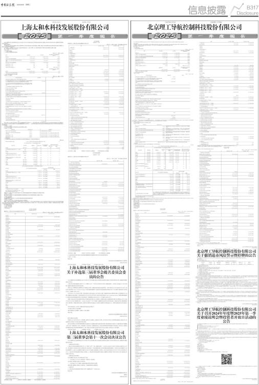 证券代码:688282 证券简称:*ST导航 本公司董事会及全体董事保证本公告内容不存在任何虚假记载、误导性陈述或者重大遗漏,并对其内容的真实性、准确性和完整性依法承担法律责任。 重要内容提示 公司董事会、监事会及董事、监事、高级管理人员保证季度报告内容的真实、准确、完整,不存在虚假记载、误导性陈述或重大遗漏,并承担个别和连带的法律责任。 公司负责人、主管会计工作负责人及会计机构负责人(会计主管人员)保证季度报告中财务信息的真实、准确、完整。 第一季度财务报表是否经审计 □是 √否 一、主要财务数据 (一)主要会计数据和财务指标 单位:元 币种:人民币 ■ (二)非经常性损益项目和金额 √适用 □不适用 单位:元 币种:人民币 ■ 对公司将《公开发行证券的公司信息披露解释性公告第1号一一非经常性损益》未列举的项目认定为非经常性损益项目且金额重大的,以及将《公开发行证券的公司信息披露解释性公告第1号一一非经常性损益》中列举的非经常性损益项目界定为经常性损益的项目,应说明原因。 □适用 √不适用 (三)主要会计数据、财务指标发生变动的情况、原因 √适用 □不适用 ■ 二、股东信息 (一)普通股股东总数和表决权恢复的优先股股东数量及前十名股东持股情况表 单位:股 ■ 报告期末公司前十大股东中,北京理工导航控制科技股份有限公司回购专用证券账户通过上海证券交易所交易系统以集中竞价交易方式回购公司股份5,736,888股,占公司总股本的比例为6.52%,未纳入前 10 名股东列示。 持股5%以上股东、前10名股东及前10名无限售流通股股东参与转融通业务出借股份情况 □适用 √不适用 前10名股东及前10名无限售流通股股东因转融通出借/归还原因导致较上期发生变化 □适用 √不适用 三、其他提醒事项 需提醒投资者关注的关于公司报告期经营情况的其他重要信息 □适用 √不适用 四、季度财务报表 (一)审计意见类型 □适用 √不适用 (二)财务报表 合并资产负债表 2025年3月31日 编制单位:北京理工导航控制科技股份有限公司 单位:元 币种:人民币 审计类型:未经审计 ■ 公司负责人:汪渤 主管会计工作负责人:李琳 会计机构负责人:苏明月 合并利润表 2025年1一3月 编制单位:北京理工导航控制科技股份有限公司 单位:元 币种:人民币 审计类型:未经审计 ■ 本期发生同一控制下企业合并的,被合并方在合并前实现的净利润为:0.00元,上期被合并方实现的净利润为:0.00 元。 公司负责人:汪渤 主管会计工作负责人:李琳 会计机构负责人:苏明月 合并现金流量表 2025年1一3月 编制单位:北京理工导航控制科技股份有限公司 单位:元 币种:人民币 审计类型:未经审计 ■ 公司负责人:汪渤 主管会计工作负责人:李琳 会计机构负责人:苏明月 (三)2025年起首次执行新会计准则或准则解释等涉及调整首次执行当年年初的财务报表 □适用 √不适用 特此公告 北京理工导航控制科技股份有限公司董事会 2025年4月30日 证券代码:688282 证券简称:*ST导航 公告编号:2025-038 北京理工导航控制科技股份有限公司 关于撤销退市风险警示暨停牌的公告 本公司董事会及全体董事保证本公告内容不存在任何虚假记载、误导性陈述或者重大遗漏,并对其内容的真实性、准确性和完整性承担法律责任。 重要内容提示: ● 证券停复牌情况:适用 因北京理工导航控制科技股份有限公司(以下简称“公司”)撤销退市风险警示,本公司的相关证券停复牌情况如下: ■ ● 停牌日期为2025年4月30日。 ● 撤销起始日为2025年5月6日。 ● 撤销后A股简称为理工导航,撤销后A股扩位简称为理工导航。 第一节 股票种类简称、证券代码以及撤销退市风险警示的起始日 (一)股票种类:人民币普通股 A 股 (二)证券简称:证券简称由“*ST导航”变更为“理工导航”;扩位证券简称由“*ST理工导航”变更为 “理工导航” (三)证券代码:仍为“688282” (四)撤销退市风险警示的起始日:2025年5月6日 第二节 撤销退市风险警示的适用情形 1、公司股票被实施退市风险警示的情况 公司于2024年4月30日披露了《关于股票实施退市风险警示暨停牌的公告》(公告编号2024-042),公司因2023年度实现归属于上市公司股东的扣除非经常性损益前后的净利润孰低为负值,且2023年度实现扣除与主营业务无关的业务收入后营业收入低于人民币1亿元,根据《上海证券交易所科创板股票上市规则》的有关规定,公司股票于2024年5月6日起被实施退市风险警示。若公司出现《上海证券交易所科创板股票上市规则》第12.4.10条规定的情形,公司股票可能被上海证券交易所终止上市。 2、公司申请撤销退市风险警示的情况 根据信永中和会计师事务所(特殊普通合伙)出具的《审计报告》(XYZH/2025BJAG1B0012),公司2024年度的营业收入为170,876,566.92元,扣除与主营业务无关的业务收入后营业收入为169,301,920.95元,归属于母公司所有者的净利润为-4,531,861.74元,归属于母公司所有者的扣除非经常性损益的净利润为-8,774,969.09元。 根据《上海证券交易所科创板股票上市规则》第12.4.10条规定:“上市公司股票因第12.4.2条被实施退市风险警示后,最近一个会计年度未出现下列任一情形的,公司可以在年度报告披露后5个交易日内,向本所申请撤销对其股票实施的退市风险警示并披露:(一)第12.4.2条第一款第一项至第三项规定的