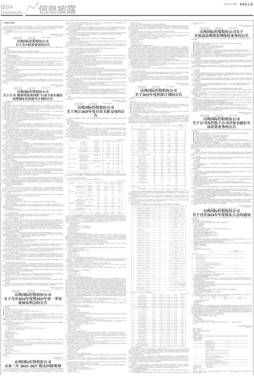监事会认为,本次利润分配方案符合《上市公司监管指引第3号一一上市公司现金分红》以及《公司章程》等规定的利润分配政策和相关法律、法规的要求,并履行了相关决策程序。此利润分配方案符合公司实际情况,有利于稳步推动公司可持续发展和维护全体股东的长远利益。我们同意公司2024年年度利润分配方案,并同意董事会将《2024年年度利润分配方案》提交股东大会审议。 四、相关风险提示 本次利润分配方案尚需提交公司股东大会审议批准。敬请广大投资者注意投资风险。 特此公告。 山鹰国际控股股份公司董事会 二〇二五年四月三十日 股票简称:山鹰国际 股票代码:600567 公告编号:临2025-034 债券简称:鹰19转债 债券代码:110063 山鹰国际控股股份公司 关于会计政策变更的公告 本公司董事会及全体董事保证本公告内容不存在任何虚假记载、误导性陈述或者重大遗漏,并对其内容的真实性、准确性和完整性承担法律责任。 重要内容提示: ● 本次会计政策变更对公司财务状况、经营成果和现金流量不产生重大影响。 ● 本次会计政策变更系公司依据中华人民共和国财政部发布的相关企业会计准则解释而进行的相应变更,无需提交公司董事会和股东大会审议。 一、本次会计政策变更的概述 (一)会计政策变更的原因及执行时间 2023年8月21日,财政部发布《关于印发〈企业数据资源相关会计处理暂行规定〉的通知》(财会(2023)11 号)(以下简称《暂行规定》),该规定自 2024 年1月1 日起施行。 2023年10月25日,财政部发布《企业会计准则解释第17号》(财会〔2023〕21号),规定了“关于流动负债与非流动负债的划分”、“关于供应商融资安排的披露”、“关于售后租回交易的会计处理”的相关内容,该解释规定自2024 年1月1日起施行。 2024年12月31日,财政部发布《企业会计准则解释第18号》(财会〔2024〕24号),规定了“关于浮动收费法下作为基础项目持有的投资性房地产的后续计量”、“关于不属于单项履约义务的保证类质量保证的会计处理”的相关内容。该解释规定自印发之日起施行,允许企业自发布年度提前执行。 (二)变更前采用的会计政策 本次会计政策变更前,公司执行财政部印发的《企业会计准则-基本准则》和各项具体会计准则、《企业会计准则应用指南》、《企业会计准则解释公告》以及其他相关规定。 (三)变更后采用的会计政策 本次会计变更后,公司自2024年1月1日起执行《暂行规定》和《企业会计准则解释第17号》相关规定,自发布之日起执行《企业会计准则解释第18号》相关规定。其他未变更部分,仍按照财政部前期颁布的《企业会计准则一基本准则》和各项具体会计准则、企业会计准则应用指南、企业会计准则解释以及其他相关规定执行。 二、本次会计政策变更对公司的影响 本次会计政策变更是根据财政部发布的相关规定进行的调整,变更后的会计政策能够更加客观、公允地反映公司的财务状况和经营成果,符合相关法律、法规的要求和公司实际情况,不会对公司财务状况、经营成果和现金流量产生重大影响,亦不存在损害公司及股东利益的情况。 特此公告。 山鹰国际控股股份公司董事会 二〇二五年四月三十日 股票简称:山鹰国际 股票代码:600567 公告编号:临2025-035 债券简称:鹰19转债 债券代码:110063 山鹰国际控股股份公司 关于公司“提质增效重回报”行动方案实施情况暨制定估值提升计划的公告 本公司董事会及全体董事保证本公告内容不存在任何虚假记载、误导性陈述或者重大遗漏,并对其内容的真实性、准确性和完整性承担个别及连带责任。 重要内容提示: ● “提质增效重回报”方案实施情况:为积极响应上海证券交易所《关于开展沪市公司“提质增效重回报”专项行动的倡议》,山鹰国际控股股份公司(以下简称“公司”)制定了2024年度“提质增效重回报”专项行动方案。公司积极落实行动方案,持续聚焦主营业务,关注投资者回报,实施了包括现金分红、股份回购、保障可转债兑付等一系列行动方案,现将公司落实“提质增效重回报”行动方案的实施情况进行总结,并结合发展实际,制订估值提升计划,提升公司质量和投资价值。 ● 估值提升计划触发情形:公司2024年12月31日(含)前连续12个月内每个交易日收盘价均低于最近一个会计年度经审计的归属于公司普通股股东的每股净资产,属于长期破净公司。 ● 审议程序:公司董事会已审议通过“提质增效重回报”行动方案实施情况并制定本次估值提升计划。 ● 估值提升计划概述:公司将聚焦主责主业,不断提升资产质量,加大新质生产力投入,提升行业竞争力,积极实施股份回购和现金分红,持续做好长期激励,强化公司治理、信息披露及投资者关系管理,促进公司价值提升。 ● 风险提示:本估值提升计划仅为公司行动计划,不代表公司对业绩、股价、重大事件等任何指标或事项的承诺。公司业绩及二级市场表现受到宏观形势、行业政策、市场情况等诸多因素影响,相关目标的实现情况存在不确定性。 一、“提质增效重回报”行动方案实施情况 (一)聚焦主营业务,提质增效 公司持续聚焦核心产业链,提质增效,推动各项业务稳健发展。2024年原纸板块产量724.01万吨,同比增长6.71%,销量732.15万吨,同比增长8.03%,产销率101.12%,实现产销均衡增长;包装板块产量21.34亿平方米,销量21