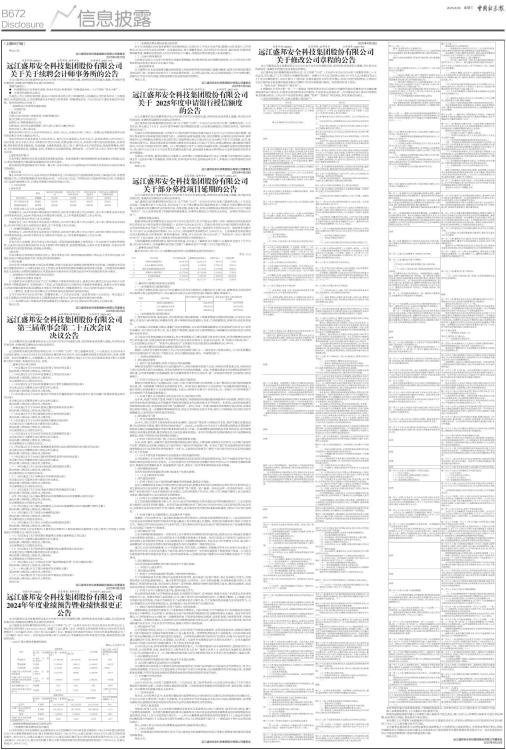 特此公告。 远江盛邦安全科技集团股份有限公司董事会 2025年4月29日 证券代码:688651 证券简称:盛邦安全 公告编号:2025-014 远江盛邦安全科技集团股份有限公司 关于关于续聘会计师事务所的公告 本公司董事会及全体董事保证本公告内容不存在任何虚假记载、误导性陈述或者重大遗漏,并对其内容的真实性、准确性和完整性依法承担法律责任。 重要内容提示: ● 拟续聘的会计师事务所名称:信永中和会计师事务所(特殊普通合伙)(以下简称“信永中和”) ● 本事项尚须股东会审议 为规范上市公司的财务管理,提高公司财务报表的公信力和透明度,以及确保公司的财务审计工作能够按时、高质量地完成,公司拟续聘请信永中和会计师事务所(特殊普通合伙)为公司2025年度财务报告审计机构。现将相关情况公告如下: 一、拟续聘会计师事务所基本情况 (一)机构信息 1.基本信息 名称:信永中和会计师事务所(特殊普通合伙) 成立日期:2012年3月2日 组织形式:特殊普通合伙企业 注册地址:北京市东城区朝阳门北大街8号富华大厦A座8层 首席合伙人:谭小青先生 截至2024年12月31日,信永中和合伙人(股东)259人,注册会计师1,780人。签署过证券服务业务审计报告的注册会计师人数超过700人。 信永中和2023年度业务收入为40.46亿元,其中,审计业务收入为30.15亿元,证券业务收入为9.96亿元。2023年度,信永中和上市公司年报审计项目364家,收费总额4.56亿元,涉及的主要行业包括制造业,信息传输、软件和信息技术服务业,交通运输、仓储和邮政业,电力、热力、燃气及水生产和供应业,批发和零售业,采矿业、文化和体育娱乐业,金融业,水利、环境和公共设施管理业、建筑业等。公司同行业上市公司审计客户家数为30家。 2.投资者保护能力 信永中和已按照有关法律法规要求投保职业保险,职业保险累计赔偿限额和职业风险基金之和超过2亿元,职业风险基金计提或职业保险购买符合相关规定。 除乐视网证券虚假陈述责任纠纷一案之外,信永中和近三年无因执业行为在相关民事诉讼中承担民事责任的情况。 3.诚信记录 截止2024年12月31日,信永中和会计师事务所近三年因执业行为受到刑事处罚0次、行政处罚1次、监督管理措施17次、自律监管措施8次和纪律处分0次。53名从业人员近三年因执业行为受到刑事处罚0次、行政处罚5次、监督管理措施17次、自律监管措施10次和纪律处分1次。 (二)项目信息 1.基本信息 ■ (1)项目合伙人近三年从业情况 邓登峰先生,2008年获得中国注册会计师资质,2008年开始从事上市公司审计,2019年开始在信永中和会计师事务所执业,2024年开始为本公司提供审计服务,近三年签署和复核的上市公司7家。 (2)签字注册会计师近三年从业情况 刘丽红女士,2017年获得中国注册会计师资质,2015年开始从事上市公司审计,2019年开始在信永中和执业,2024年开始为本公司提供审计服务,近三年签署上市公司4家。 (3)质量控制复核人近三年从业情况 林苇铭女士,2003年获得中国注册会计师资质,2006年开始从事上市公司审计,2008年开始在信永中和会计师事务所执业,2024年开始为本公司提供审计服务,近三年签署和复核的上市公司3家。 2.诚信记录 项目合伙人邓登峰、签字注册会计师刘丽红、项目质量控制复核人林苇铭近三年无执业行为受到刑事处罚,无受到证监会及其派出机构、行业主管部门的行政处罚、监督管理措施,无受到证券交易场所、行业协会等自律组织的自律监管措施、纪律处分等情况。 3.独立性 信永中和会计师事务所及项目合伙人、签字注册会计师、项目质量控制复核人等从业人员不存在违反《中国注册会计师职业道德守则》对独立性要求的情形。 4、审计收费 2025年审计收费将根据公司的业务规模、所处行业和会计处理复杂程度等多方面因素,并根据公司年报审计需配备的审计人员情况和投入的工作量以及事务所的收费标准确定最终的审计收费。公司董事会拟提请股东大会授权公司管理层根据2025年度具体审计要求和审计范围与信永中和协商确定相关审计费用。 二、拟续聘会计师事务所履行的审议程序 (一)董事会审计委员会意见 公司董事会审计委员会审议了《关于续聘会计师事务所的议案》,董事会审计委员会对信永中和会计师事务所(特殊普通合伙)的资质进行了审查,认为其满足为公司提供审计服务的资质要求,具备审计的专业能力,因此同意向董事会提议续聘信永中和会计师事务所(特殊普通合伙)为公司2025年度审计机构。 (二)董事会、监事会对本次聘任会计事务所相关议案的审议和表决情况 公司于2025年4月28日召开第三届董事会第二十五次会议及第三届监事会第十七次会议,审议通过了《关于续聘会计师事务所的议案》,同意聘请信永中和为公司2025年度财务报告审计机构。 (三)本次聘任会计师事务所事项尚需提交公司股东会,并自公司股东会审议通过之日起生效。 特此公告。 远江盛邦安全科技集团股份有限公司董事会 2025年4月29日 证券代码:688651 证券简称:盛邦安全 公告编号:2025-021 远江盛邦安全科技集团股份有限公司 第三届董事会第二十五次会议 决议公告 本公司董事会及全体董事保证本公告内容不存在任何虚假记载、误导性陈述或者重大遗漏,并对其内容的真实性、准确性和完整性依法承担法律责任。 一、董事会会议召开情况 远江盛邦安