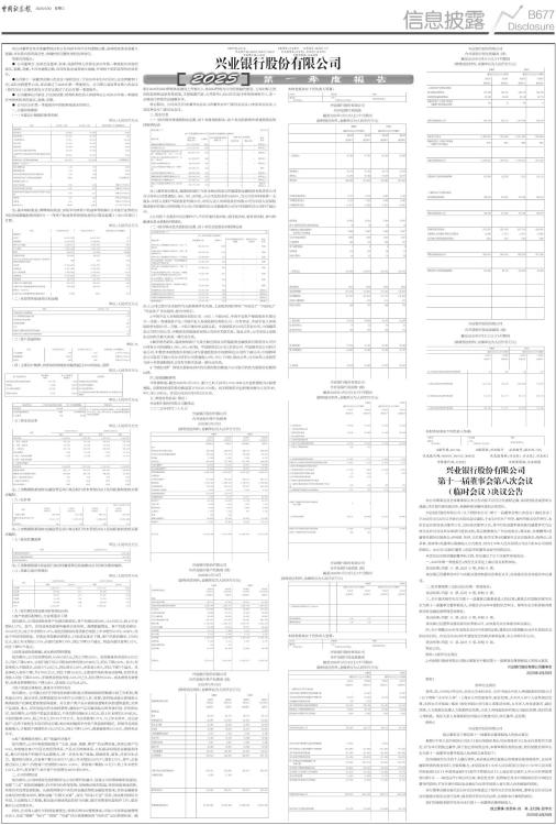 A股代码:601166 A股简称:兴业银行 公告编号:临2025-017 优先股代码:360005、360012、360032 优先股简称:兴业优1、兴业优2、兴业优3 可转债代码:113052 可转债简称:兴业转债 兴业银行股份有限公司 本公司董事会及全体董事保证本公告内容不存在任何虚假记载、误导性陈述或者重大遗漏,并对其内容的真实性、准确性和完整性承担法律责任。 重要内容提示: ● 公司董事会、监事会及董事、监事、高级管理人员保证2025年第一季度报告内容的真实、准确、完整,不存在虚假记载、误导性陈述或者重大遗漏,并承担个别和连带的法律责任。 ●公司第十一届董事会第八次会议(临时会议)于2025年4月29日召开,应出席董事11名,实际出席董事11名,审议通过了2025年第一季度报告。公司第九届监事会第六次会议(临时会议)以通讯表决方式审议通过了2025年第一季度报告。 ● 公司董事长吕家进、行长陈信健、财务机构负责人林舒保证公司2025年第一季度报告中财务报表的真实、准确、完整。 ● 公司2025年第一季度报告中的财务报表未经审计。 一、主要财务数据 (一)主要会计数据和财务指标 单位:人民币百万元 ■ 注:基本每股收益、稀释每股收益、加权平均净资产收益率等根据《公开发行证券的公司信息披露编报规则第9号一一净资产收益率和每股收益的计算及披露》(2010年修订)计算。 单位:人民币百万元 ■ (二)非经常性损益项目和金额 单位:人民币百万元 ■ (三)资产质量指标 单位:% ■ (四)主要会计数据、财务指标增减变动幅度超过30%的情况、原因 单位:人民币百万元 ■ 单位:人民币百万元 ■ (五)资本充足率 单位:人民币百万元 ■ 注:上表数据根据国家金融监管总局《商业银行资本管理办法》及其配套制度相关要求编制。 (六)杠杆率 ■ 注:上表数据根据国家金融监管总局《商业银行资本管理办法》及其配套制度相关要求编制。 (七)流动性覆盖率 单位:人民币百万元 ■ 注:上表数据根据《商业银行流动性覆盖率信息披露办法》的相关要求编制。 (八)贷款五级分类情况 单位:人民币百万元 ■ (九)报告期经营业绩与财务情况分析 1.资产负债匹配增长,付息率逐步下降 报告期内,公司持续推进资产负债匹配增长,资产总额达到106,312.99亿元,较上年末增长1.17%。其中,信贷业务投放聚焦服务实体经济,规模稳健增长,客户贷款余额58,153.87亿元,较上年末增长1.37%;绿色贷款和科技贷款分别较上年末增长9.37%、9.90%,均高于各项贷款增速。存款业务规模合理增长,付息成本逐步下降,客户存款余额56,279.65亿元,较上年末增长1.73%;存款付息率1.79%,同比下降33个基点。同业存款付息率1.81%,同比下降57个基点。 2.经营业绩保持稳健,成本费用管控增强 报告期内,公司实现营业收入556.83亿元,同比下降3.58%。实现拨备前利润416.41亿元,同比下降4.36%,实现归属于母公司股东的净利润237.96亿元,同比下降2.22%。其中,利息净收入平稳增长,达到377.22亿元,同比增长1.29%,净息差1.80%,同比下降7个基点。非息净收入有所下降,为179.61亿元,同比下降12.42%;主要受市场利率波动影响,其他非息净收入同比下降21.50%;手续费及佣金净收入67.27亿元,同比增长8.54%。成本费用有效管控,业务及管理费同比下降1.05%,成本收入比为24.22%。 3.资产质量总体稳定,拨备水平保持充足 报告期内,公司建立总行行领导挂钩督导和重点领域风险防控敏捷小组工作机制,聚焦重点分行、重点项目,统筹调度总分行和子公司相关人员、资源,协同推动重点领域及大额风险资产化解处置持续取得成效。对全资产类产品开展商业逻辑和风控逻辑重检,完善产品创设、准入、评价及退出的全流程管理,确保对产品关键风险点的有效识别、评估和应对。报告期内,公司资产质量总体稳定,不良贷款余额628.31亿元,较上年末增加13.54亿元,不良贷款率1.08%,较上年末上升0.01个百分点。关注贷款率1.71%,与上年末持平。对公房地产、信用卡新发生不良均同比回落,地方政府融资平台资产质量保持稳定。持续夯实风险抵御能力,计提资产减值损失142.27亿元,同比下降11.39%,拨备覆盖率233.42%,保持充足水平。 4.客户规模稳步增长,客户质量有序提升 报告期内,公司不断稳固和提升“主流、创新、便捷、尊享”的品牌形象,坚持以客户为中心,持续健全客户分层分类经营体系、产品交叉销售体系、公私联动和场景金融服务体系,着力升级客户的数字化运营能力,进一步优化客户体验,增强获客、留客、活客内生动力。截至报告期末,企金客户数156.48万户,较上年末增加2.93万户,增长1.91%,其中,企金潜力及以上客户、价值客户分别增长2.60%、2.89%。零售客户数超1.11亿户,较上年末增长1.41%,其中,贵宾客户、私行客户分别增长4.60%和3.99%。 二、公司治理信息 报告期内,公司持续深化党的领导与公司治理有机融合,加强公司治理体制机制建设,保障“三会”规范高效履职,科学研判内外部形势,加快推动转型发展,坚持风险底线思维,持续夯实经营发展根基。认真贯彻落实中央经济金融政策和金融监管要求,坚持金融服务实体经济的根本宗旨,聚焦金融“五篇大文章”,深化“区域+行业”经营,加快推进国际化布局,主动拥抱人工智能,推动重点领域风险防控与化解,做好消费者权益保护工作,稳步提升公司治理水平。 同时,公司深入践行可持续发展理念,持续完善ESG管理体系,印发《可持续发展