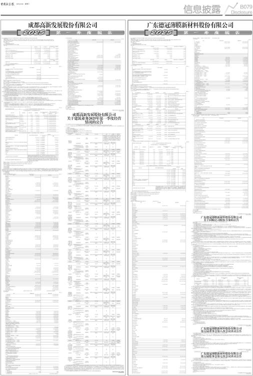 证券代码:001378 证券简称:德冠新材 公告编号:2025-018 广东德冠薄膜新材料股份有限公司 本公司及董事会全体成员保证信息披露的内容真实、准确、完整,没有虚假记载、误导性陈述或重大遗漏。 重要内容提示: 1.董事会、监事会及董事、监事、高级管理人员保证季度报告的真实、准确、完整,不存在虚假记载、误导性陈述或重大遗漏,并承担个别和连带的法律责任。 2.公司负责人、主管会计工作负责人及会计机构负责人(会计主管人员)声明:保证季度报告中财务信息的真实、准确、完整。 3.第一季度报告是否经审计 □是 √否 一、主要财务数据 (一) 主要会计数据和财务指标 公司是否需追溯调整或重述以前年度会计数据 □是 √否 ■ (二) 非经常性损益项目和金额 √适用 □不适用 单位:元 ■ 其他符合非经常性损益定义的损益项目的具体情况 □适用 √不适用 公司不存在其他符合非经常性损益定义的损益项目的具体情况。 将《公开发行证券的公司信息披露解释性公告第1号一一非经常性损益》中列举的非经常性损益项目界定为经常性损益项目的情况说明 □适用 √不适用 公司不存在将《公开发行证券的公司信息披露解释性公告第1号一一非经常性损益》中列举的非经常性损益项目界定为经常性损益的项目的情形。 (三) 主要会计数据和财务指标发生变动的情况及原因 √适用 □不适用 单位:元 ■ 二、股东信息 (一) 普通股股东总数和表决权恢复的优先股股东数量及前十名股东持股情况表 单位:股 ■ 持股5%以上股东、前10名股东及前10名无限售流通股股东参与转融通业务出借股份情况 □适用 √不适用 前10名股东及前10名无限售流通股股东因转融通出借/归还原因导致较上期发生变化 □适用 √不适用 (二) 公司优先股股东总数及前10名优先股股东持股情况表 □适用 √不适用 三、其他重要事项 □适用 √不适用 四、季度财务报表 (一) 财务报表 1、合并资产负债表 编制单位:广东德冠薄膜新材料股份有限公司 2025年03月31日单位:元 ■ 法定代表人:罗维满 主管会计工作负责人:杨冰 会计机构负责人:杨冰 2、合并利润表 单位:元 ■ 本期发生同一控制下企业合并的,被合并方在合并前实现的净利润为0元,上期被合并方实现的净利润为0元。 法定代表人:罗维满 主管会计工作负责人:杨冰 会计机构负责人:杨冰 3、合并现金流量表 单位:元 ■ (二) 2025年起首次执行新会计准则调整首次执行当年年初财务报表相关项目情况 □适用 √不适用 (三) 审计报告 第一季度报告是否经过审计 □是 √否 公司第一季度报告未经审计。 广东德冠薄膜新材料股份有限公司董事会 2025年04月30日 证券代码:001378 证券简称:德冠新材 公告编号:2025-019 广东德冠薄膜新材料股份有限公司 关于回购公司股份方案的公告 本公司及董事会全体成员保证信息披露的内容真实、准确、完整,没有虚假记载、误导性陈述或重大遗漏。 重要内容提示: 1、拟回购股份的基本情况 (1)拟回购股份的种类:广东德冠薄膜新材料股份有限公司(以下简称“公司”)已公开发行的人民币普通股(A股)。 (2)拟回购股份的用途:用于员工持股计划或者股权激励。 (3)拟回购股份的价格上限:不超过人民币32.44元/股(含),不高于董事会通过回购决议前三十个交易日公司股票交易均价的150%。 (4)拟用于回购的资金总额及资金来源:不低于人民币2,000万元(含)且不超过人民币4,000万元(含)。资金来源为公司自有资金及回购股票专项贷款资金。 (5)拟回购股份的数量及占比:按回购股份价格上限32.44元/股测算,预计回购股份数量为616,523股至1,233,045股,占公司目前总股本比例为0.46%至0.92%。具体回购股份的数量以回购期满或回购完毕时公司实际回购的股份数量为准。 (6)拟回购股份的实施期限:自公司董事会审议通过本回购方案之日起不超过12个月。 2、相关股东是否存在减持计划 截至本公告披露日,公司董事、监事、高级管理人员、控股股东、实际控制人、公司持股5%以上股东及其一致行动人在回购股份实施期间暂无减持计划。若未来前述主体拟实施股份减持计划,公司将按照相关规定及时履行信息披露义务。 3、相关风险提示 (1)回购期内股价持续超出回购方案披露的价格上限,将导致回购方案无法实施或只能部分实施的风险。 (2)因对公司股票交易价格产生重大影响的重大事项发生,或公司生产经营、财务状况、外部客观情况发生重大变化等,存在可能根据规则变更或终止回购方案的风险。 (3)本次回购股份方案计划用于员工持股计划或者股权激励,可能存在因股权激励计划或员工持股计划未能经公司董事会和股东大会等决策机构审议通过、股权激励对象放弃认购等原因,导致已回购股份无法在回购完成之后三年内全部转让的风险。 (4)本次回购股份的资金来源于公司自有资金及回购股票专项贷款资金,存在回购股份所需资金未能筹措到位,导致回购方案无法实施的风险。 (5)如遇监管部门颁布新的回购相关规范性文件,可能导致本次回购实施过程中需要根据监管新规调整回购相应条款的风险。若出现上述情形,公司将根据回购事项的进展情况,及时履行信息披露义务。 公司于2025年4月28日召开了第五届董事会第八次会议、第五届监事会第七次会议审议通过了《关于回购公司股份方案的议案》,现将具体内容公告如