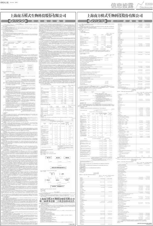 证券代码:688265 证券简称:南模生物 上海南方模式生物科技股份有限公司 本公司董事会及全体董事保证本公告内容不存在任何虚假记载、误导性陈述或者重大遗漏,并对其内容的真实性、准确性和完整性依法承担法律责任。 重要内容提示 公司董事会、监事会及董事、监事、高级管理人员保证季度报告内容的真实、准确、完整,不存在虚假记载、误导性陈述或重大遗漏,并承担个别和连带的法律责任。 公司负责人、主管会计工作负责人及会计机构负责人(会计主管人员)保证季度报告中财务信息的真实、准确、完整。 第一季度财务报表是否经审计 □是 √否 一、主要财务数据 (一)主要会计数据和财务指标 单位:元 币种:人民币 ■ 注:对于上期数据为负的情况,如果本期盈利或本期数仍为负数,变动比例填写“不适用”,以 绝对值计算的“同比变动比例”数值详见“(三)主要会计数据、财务指标发生变动的情况、原 因”。 (二)非经常性损益项目和金额 √适用 □不适用 单位:元 币种:人民币 ■ 对公司将《公开发行证券的公司信息披露解释性公告第1号一一非经常性损益》未列举的项目认定为非经常性损益项目且金额重大的,以及将《公开发行证券的公司信息披露解释性公告第1号一一非经常性损益》中列举的非经常性损益项目界定为经常性损益的项目,应说明原因。 □适用 √不适用 (三)主要会计数据、财务指标发生变动的情况、原因 √适用 □不适用 ■ 注:“(一)主要会计数据和财务指标”中对于上期数据为负的情况,如果本期盈利或本期数仍为负数,变动比例填写“不适用”,但本表中需对主要会计数据、财务指标发生超 30%变动的情况进行说明,故“变动比例”为以绝对值计算的数值。 二、股东信息 (一)普通股股东总数和表决权恢复的优先股股东数量及前十名股东持股情况表 单位:股 ■ 持股5%以上股东、前10名股东及前10名无限售流通股股东参与转融通业务出借股份情况 □适用 √不适用 前10名股东及前10名无限售流通股股东因转融通出借/归还原因导致较上期发生变化 □适用 √不适用 三、其他提醒事项 需提醒投资者关注的关于公司报告期经营情况的其他重要信息 □适用 √不适用 四、季度财务报表 (一)审计意见类型 □适用 √不适用 (二)财务报表 合并资产负债表 2025年3月31日 编制单位:上海南方模式生物科技股份有限公司 单位:元 币种:人民币 审计类型:未经审计 ■ ■ 公司负责人:费俭主管会计工作负责人:王明俊会计机构负责人:王明俊 合并利润表 2025年1一3月 编制单位:上海南方模式生物科技股份有限公司 单位:元 币种:人民币 审计类型:未经审计 ■ 本期发生同一控制下企业合并的,被合并方在合并前实现的净利润为:0元,上期被合并方实现的净利润为:0 元。 公司负责人:费俭主管会计工作负责人:王明俊会计机构负责人:王明俊 合并现金流量表 2025年1一3月 编制单位:上海南方模式生物科技股份有限公司 单位:元 币种:人民币 审计类型:未经审计 ■ 公司负责人:费俭主管会计工作负责人:王明俊会计机构负责人:王明俊 (三)2025年起首次执行新会计准则或准则解释等涉及调整首次执行当年年初的财务报表 □适用 √不适用 特此公告 上海南方模式生物科技股份有限公司董事会 2025年4月27日