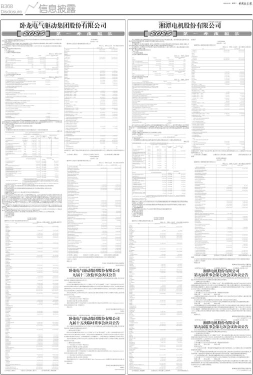 证券代码:600416 证券简称:湘电股份 湘潭电机股份有限公司 本公司董事会及全体董事保证本公告内容不存在任何虚假记载、误导性陈述或者重大遗漏,并对其内容的真实性、准确性和完整性承担法律责任。 重要内容提示 公司董事会、监事会及董事、监事、高级管理人员保证季度报告内容的真实、准确、完整,不存在虚假记载、误导性陈述或重大遗漏,并承担个别和连带的法律责任。 公司负责人、主管会计工作负责人及会计机构负责人(会计主管人员)保证季度报告中财务信息的真实、准确、完整。 第一季度财务报表是否经审计 □是 √否 一、主要财务数据 主要会计数据和财务指标 单位:元 币种:人民币 ■ 非经常性损益项目和金额 √适用 □不适用 单位:元 币种:人民币 ■ 对公司将《公开发行证券的公司信息披露解释性公告第1号一一非经常性损益》未列举的项目认定为非经常性损益项目且金额重大的,以及将《公开发行证券的公司信息披露解释性公告第1号一一非经常性损益》中列举的非经常性损益项目界定为经常性损益的项目,应说明原因。 □适用 √不适用 主要会计数据、财务指标发生变动的情况、原因 √适用 □不适用 ■ 二、股东信息 (一)普通股股东总数和表决权恢复的优先股股东数量及前十名股东持股情况表 单位:股 ■ 持股5%以上股东、前10名股东及前10名无限售流通股股东参与转融通业务出借股份情况 □适用 √不适用 前10名股东及前10名无限售流通股股东因转融通出借/归还原因导致较上期发生变化 □适用 √不适用 三、其他提醒事项 需提醒投资者关注的关于公司报告期经营情况的其他重要信息 □适用 √不适用 四、季度财务报表 (一)审计意见类型 □适用 √不适用 (二)财务报表 合并资产负债表 2025年3月31日 编制单位:湘潭电机股份有限公司 单位:元 币种:人民币 审计类型:未经审计 ■ 公司负责人:张越雷 主管会计工作负责人:彭艳萍 会计机构负责人:彭艳萍 合并利润表 2025年1一3月 编制单位:湘潭电机股份有限公司 单位:元 币种:人民币 审计类型:未经审计 ■ 本期发生同一控制下企业合并的,被合并方在合并前实现的净利润为:0元,上期被合并方实现的净利润为:0 元。 公司负责人:张越雷 主管会计工作负责人:彭艳萍 会计机构负责人:彭艳萍 合并现金流量表 2025年1一3月 编制单位:湘潭电机股份有限公司 单位:元 币种:人民币 审计类型:未经审计 ■ 公司负责人:张越雷 主管会计工作负责人:彭艳萍 会计机构负责人:彭艳萍 (三)2025年起首次执行新会计准则或准则解释等涉及调整首次执行当年年初的财务报表 □适用 √不适用 特此公告 湘潭电机股份有限公司董事会 2025年4月29日 证券代码:600416 证券简称:湘电股份 公告编号:2025临-033 湘潭电机股份有限公司 第九届董事会第七次会议决议公告 本公司董事会及全体董事保证本公告内容不存在任何虚假记载、误导性陈述或者重大遗漏,并对其内容的真实性、准确性和完整性承担法律责任。 一、董事会会议召开情况 湘潭电机股份有限公司(以下简称“公司”)第九届董事会第七次会议于2025年4月29日以现场和通讯表决相结合的方式召开,会议由张越雷先生主持,应参会董事9名,实参会董事9名,其中现场出席董事3人,通讯方式出席董事6人,公司监事会和经理层成员列席了会议。会议符合《公司法》和《公司章程》的有关规定。 二、董事会会议审议情况 1、审议通过了《关于公司2025年第一季度报告的议案》 同意:9票 反对:0票 弃权:0票 《湘潭电机股份有限公司2025年第一季度报告》已于2025年4月30日刊登在上海证券交易所网站,供投资者查阅。 本议案已经公司第九届董事会审计委员会第三次会议全票审议通过。 2、审议通过了《关于对公司之全资子公司长沙湘电电气技术有限公司实施增资的议案》 同意:9票 反对:0票 弃权:0票 为加快战略性新兴产业培育和发展,公司之全资子公司长沙湘电电气技术有限公司拟与华中科技大学组建湖南湘电强磁科技有限公司发展磁浮轴承高速电机产业(详见公司于2025年4月19日披露的《湘潭电机股份有限公司关于公司全资公司对外投资公告》,公告编号:2025临-031),同意公司对长沙湘电电气技术有限公司增资6,000万元,由其专项同步用于新公司股本金出资。 特此公告。 湘潭电机股份有限公司董事会 二〇二五年四月三十日 证券代码:600416 证券简称:湘电股份 公告编号:2025临-034 湘潭电机股份有限公司 第九届监事会第七次会议决议公告 本公司监事会及全体监事保证本公告内容不存在任何虚假记载、误导性陈述或者重大遗漏,并对其内容的真实性、准确性和完整性承担法律责任。 一、监事会会议召开情况 湘潭电机股份有限公司(以下简称“公司”)第九届监事会第七次会议于2025年4月29日以现场和通讯表决相结合的方式召开,应参会监事3名,实参会监事3名,其中现场出席监事2人,通讯方式出席监事1人,会议符合《公司法》和《公司章程》的有关规定。 二、监事会会议审议情况 1、审议通过了《关于公司2025年第一季度报告的议案》 同意:3票 反对:0票 弃权:0票 监事会认为: (1)公司2025年第一季度报告的编制和审议符合法律法规、《公司章程》和公司内部管理制度的各项规定。 (2)第一季度报告的内容和格式符合中国证监会和上海证券交易所的有关规定和
