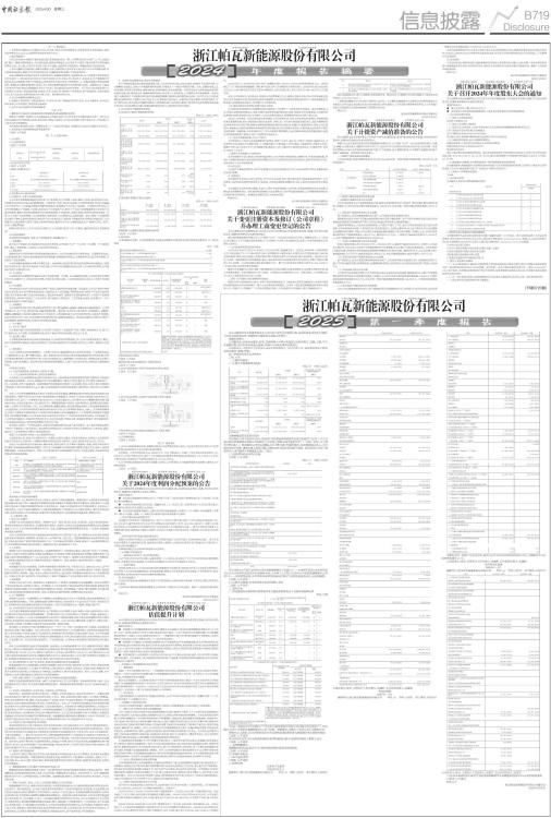证券代码:688184 证券简称:帕瓦股份 浙江帕瓦新能源股份有限公司 本公司董事会及全体董事保证本公告内容不存在任何虚假记载、误导性陈述或者重大遗漏,并对其内容的真实性、准确性和完整性依法承担法律责任。 重要内容提示 公司董事会、监事会及董事、监事、高级管理人员保证季度报告内容的真实、准确、完整,不存在虚假记载、误导性陈述或重大遗漏,并承担个别和连带的法律责任。 公司负责人、主管会计工作负责人及会计机构负责人(会计主管人员)保证季度报告中财务信息的真实、准确、完整。 第一季度财务报表是否经审计 □是 √否 一、主要财务数据 (一)主要会计数据和财务指标 单位:元 币种:人民币 ■ 追溯调整或重述的原因说明 帕瓦股份公司于2025年3月25日收到中国证券监督管理委员会浙江监管局下达的《关于对浙江帕瓦新能源股份有限公司及相关人员采取出具警示函措施的决定》(〔2025〕48号,以下简称《警示函》)。帕瓦股份公司经自查确认存在《警示函》所指的情形,包括虚增营业收入、少计提存货跌价准备、虚增在建工程等问题,导致2023年年报信息披露不准确。帕瓦股份公司对自查发现的上述问题采用追溯重述法进行了更正。 (二)非经常性损益项目和金额 √适用 □不适用 单位:元 币种:人民币 ■ 对公司将《公开发行证券的公司信息披露解释性公告第1号一一非经常性损益》未列举的项目认定为非经常性损益项目且金额重大的,以及将《公开发行证券的公司信息披露解释性公告第1号一一非经常性损益》中列举的非经常性损益项目界定为经常性损益的项目,应说明原因。 □适用 √不适用 (三)主要会计数据、财务指标发生变动的情况、原因 □适用 √不适用 二、股东信息 (一)普通股股东总数和表决权恢复的优先股股东数量及前十名股东持股情况表 单位:万股 ■ 注:前十名股东中存在回购专户“浙江帕瓦新能源股份有限公司回购专用证券账户”,报告期末,该专户持有的普通股数量为3,523,322股。根据规定,回购专户未纳入前十名股东列示。 持股5%以上股东、前10名股东及前10名无限售流通股股东参与转融通业务出借股份情况 □适用 √不适用 前10名股东及前10名无限售流通股股东因转融通出借/归还原因导致较上期发生变化 □适用 √不适用 三、其他提醒事项 需提醒投资者关注的关于公司报告期经营情况的其他重要信息 □适用 √不适用 四、季度财务报表 (一)审计意见类型 □适用 √不适用 (二)财务报表 合并资产负债表 2025年3月31日 编制单位:浙江帕瓦新能源股份有限公司单位:元 币种:人民币 审计类型:未经审计 ■ 公司负责人:张宝 主管会计工作负责人:袁建军 会计机构负责人:袁建军 合并利润表 2025年1一3月 编制单位:浙江帕瓦新能源股份有限公司单位:元 币种:人民币 审计类型:未经审计 ■ 本期发生同一控制下企业合并的,被合并方在合并前实现的净利润为:0元,上期被合并方实现的净利润为:0 元。 公司负责人:张宝 主管会计工作负责人:袁建军 会计机构负责人:袁建军 合并现金流量表 2025年1一3月 编制单位:浙江帕瓦新能源股份有限公司单位:元 币种:人民币 审计类型:未经审计 ■ 公司负责人:张宝 主管会计工作负责人:袁建军 会计机构负责人:袁建军 (三)2025年起首次执行新会计准则或准则解释等涉及调整首次执行当年年初的财务报表 □适用 √不适用 特此公告 浙江帕瓦新能源股份有限公司董事会 2025年4月28日