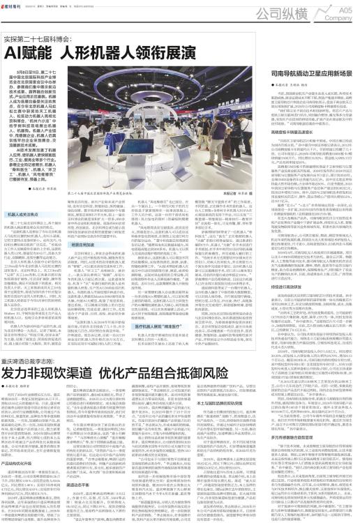 5月8日至11日,第二十七届中国北京国际科技产业博览会在北京国家会议中心举办,参展商们集中展示前沿技术成果、跨界融合创新范式、产业应用示范案例。机器人成为各展台备受关注的焦点,在今年北京机器人马拉松比赛中获奖的天工机器人、松延动力机器人亮相北京科博会,“杭州六小龙”中的宇树科技现场展出机器人、机器狗。机器人产业链中,传感器企业、机器人仿真训练平台企业来到展会,交流最新技术成果。 AI技术发展加速了机器人应用,使机器人更快赋能医疗、工业、服务业等多个行业。参展企业向记者展示,机器人“骨科医生”、机器人“环卫工”、机器人“风电维修员”已整装待发,预备上岗。 ● 本报记者 郑萃颖 机器人成关注焦点 第二十七届北京科博会上,各个展台的机器人展品都是观众关注的焦点。 “这款机器人是参加了今年北京机器人马拉松比赛的N2机器人,名叫小顽童。它的主要特点是身材娇小,动作灵巧,马拉松比赛结束后收获广泛关注。”松延动力工作人员姚俊伶在展台上介绍,这款机器人高1.2米,重量仅为30公斤,具备大步行走、双脚跳跃、连续空翻等运动能力。 北京人形机器人创新中心研发的天工Ultra是今年北京机器人马拉松比赛的冠军选手。北京科博会上,天工Ultra的“兄弟”天工Lite亮相,它具备开源开放性和兼容扩展性,可灵活扩展软、硬件等功能模块,满足不同场景下的需求。相关负责人介绍,天工家族新成员天工2.0也将于近期发布,将成为国内首个针对复杂地形自适应行走的人形机器人。同时,天工机器人将参加于今年8月举行的世界机器人运动会。 北京优必选带来的工业人形机器人Walker S1,宇树科技带来其主力产品人形机器人G1,也吸引众多参观者前来围观问询。 机器人作为新兴科技产品的代表,成为北京科博会一大亮点。记者了解到,本届北京科博会以“科技引领,创享未来”为主题,设置了展览会、贸易投资促进活动、线上展示对接三大板块。其中,展览会聚焦前沿科技、新兴产业和未来产业领域,设有信息科技、智能制造、医药健康、绿色双碳、数字经济和区域创新6个专题展区,展览总面积5万平方米,较上一届北京科博会的展览面积扩大一倍多,800余家中外企业和机构参展,现场有600余项首发、首创展品。北京科博会成为展示我国科技创新前沿成果的重要窗口和促进科技产业国际交流合作的重要平台。 场景应用加速 北京科博会上,多家企业带来的机器人新产品已经开始投放市场,赋能各类生活场景。同时,AI技术的应用使机器人更具“智能”,可以更灵活地完成各项工作。 机器人“环卫工”亮相展会。展台上,一款头顶长着两只“眼睛”、形似小车的机器人引起记者注意。这款通体灰色、机身下“长”有清扫刷的机器人是有鹿机器人研发、生产的AI130商业巡扫机器人。有鹿机器人市场经理许林波介绍,这款机器人搭载有Master2000通用具身大脑,内置AI大模型,配备了视觉系统、雷达系统,可以精准识别路上的白色垃圾和障碍物,完成巡逻、清扫工作,尤其适合于产业园、公园、高校、商业综合体等场景。 “这款机器人从2024年年底开始投放市场,目前在北京投放了几十台,在全国投放几百台,同时销往东南亚市场。”许林波说。他告诉记者,目前一台AI130商业巡扫机器人的价格在20万元左右,在实际应用中可减轻3至5人的工作量。 机器人“风电维修员”也已就位。在另一个展台上,一个带四只轮子的四方形铁盒子紧紧吸附在一块垂直铁板上,工作人员介绍,这是一台用于清洁风电塔筒(风力发电的塔杆)的磁吸附爬壁机器人。 “风电塔筒表面呈圆弧形,底面直径大,顶端直径小,这款机器人可以适应这种曲率变化的场景,在塔筒上完成任何方向的复杂运动。”慧兮科技副总经理唐梁告诉记者,“随着风电兆瓦数越来越大,风电塔最高能达到200多米,机器人可以帮人完成清洁维护塔筒的危险工作。” 唐梁表示,这款机器人可以增加不同的功能模块,实现塔筒清洗、除锈、涂漆、焊缝检测等工作。“AI技术帮助机器人在高空中自动识别塔筒污渍、锈迹,或者检测焊缝,实现对风电塔筒的日常运维,同时帮助野外作业人员降低操作难度。”唐梁说。去年10月,这款爬壁机器人开始投放市场。 另一家爬壁机器人企业奥克福带来一台多功能AI+爬壁机器人,可以轻松爬上展馆的墙面。这款机器人以自主研发生产的AI攀爬检测机器人为核心,利用抽真空负压原理,可以在各类墙壁上活动,产品可用于地铁隧道、高铁隧道等基础设施检修场景。 医疗机器人展现“精准医疗” 机器人在医疗领域的应用是本届北京科博会上的另一大看点。 长禾谷医疗在展台上还原了给人类模型做“膝关节置换手术”的工作场景,不同的是,正在操作手术的是机器人。这台人工智能+全骨科手术机器人ROPA在AI规划系统的支持下作业,可以实现“三维重建—智能规划—精准执行—数智评估”全流程一体化,可支持髋、膝、脊柱等多部位手术。 罗森博特同样带来了一位机器人“骨科医生”,这位“医生”正在根据机器人“大脑”的指引将骨盆复位。通过患者拍摄的CT片,机器人“大脑”在手术前进行手术规划,在手术中利用3D实时导航来确保复位的准确性,并完成植入螺钉的工作。“传统手术方式需要切开20厘米左右的切口,对病人伤害较大,并且需要五六个医生协