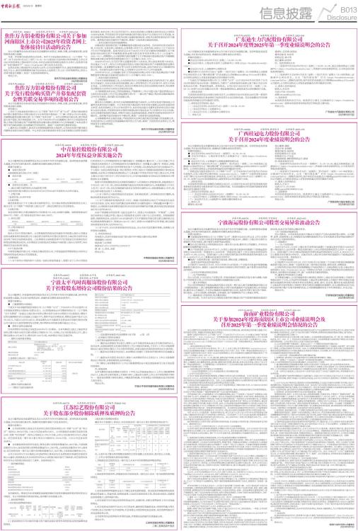 本公司董事会及全体董事保证本公告内容不存在任何虚假记载、误导性陈述或者重大遗漏,并对其内容的真实性、准确性和完整性承担法律责任。 重要内容提示: ●会议召开时间:2025年6月3日(星期二)14:00-15:00 ●会议召开地点:上海证券交易所上证路演中心(网址:https://roadshow.sseinfo.com/) ●会议召开方式:上证路演中心网络互动 ●投资者可于2025年5月26日(星期一)至5月30日(星期五)16:00前登录上证路演中心网站首页点击“提问预征集”栏目或通过公司邮箱dcenti@vip.163.com进行提问。公司将在说明会上对投资者普遍关注的问题进行回答。 广东迪生力汽配股份有限公司(以下简称“公司”)已于2025年4月30日发布了公司2024年度报告及2025年第一季度报告,为便于广大投资者更全面深入地了解公司2024年度及2025年第一季度经营成果、财务状况,公司计划于2025年6月3日(星期二)14:00-15:00举行2024年度暨2025年第一季度业绩说明会,就投资者关心的问题进行交流。 一、说明会类型 本次投资者说明会以网络互动形式召开,公司将针对2024年度及2025年第一季度的经营成果及财务指标的具体情况与投资者进行互动交流和沟通,在信息披露允许的范围内就投资者普遍关注的问题进行回答。 二、说明会召开的时间、地点 (一)会议召开时间:2025年6月3日(星期二)14:00-15:00 (二)会议召开地点:上证路演中心 (三)会议召开方式:上证路演中心网络互动 三、 参加人员 董事长、总经理:赵瑞贞 董事会秘书:朱东奇 财务总监:林子欣 独立董事:陈进军 四、 投资者参加方式 (一)投资者可在2025年6月03日(星期二)14:00-15:00,通过互联网登录上证路演中心(https://roadshow.sseinfo.com/),在线参与本次业绩说明会,公司将及时回答投资者的提问。 (二)投资者可于2025年5月26日(星期一)至5月30日(星期五)16:00前登录上证路演中心网站首页,点击“提问预征集”栏目(https://roadshow.sseinfo.com/preCallQa),根据活动时间,选中本次活动或通过公司邮箱dcenti@vip.163.com向公司提问,公司将在说明会上对投资者普遍关注的问题进行回答。 五、联系人及咨询办法 联系人:朱东奇 电话:0750-5588095 邮箱:dcenti@vip.163.com 六、其他事项 本次投资者说明会召开后,投资者可以通过上证路演中心(https://roadshow.sseinfo.com/)查看本次投资者说明会的召开情况及主要内容。 特此公告。 广东迪生力汽配股份有限公司 2025年5月15日