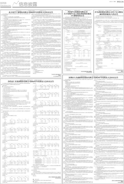 证券代码:000912 证券简称:泸天化 公告编号:2025-026 四川泸天化股份有限公司 关于持股5%以上股东增持股份触及1%整数倍的公告 公司股东泸州产业发展投资集团有限公司保证向本公司提供的信息内容真实、准确、完整,没有虚假记载、误导性陈述或重大遗漏。 本公司及董事会全体成员保证公告内容与信息披露义务人提供的信息一致。 四川泸天化股份有限公司(以下简称“公司”)持股5%以上股东泸州产业发展投资集团有限公司(以下简称“泸州发展集团”)增持公司股份的计划已于2024年12月26日在《中国证券报》《证券时报》《上海证券报》及巨潮资讯网(http://www.cninfo.com.cn)以公告形式披露,公告名称为《四川泸天化股份有限公司关于持股5%以上股东拟增持公司股份计划的公告》(公告编号:2024-069)。后公司又于2025年3月27日在《中国证券报》《证券时报》《上海证券报》及巨潮资讯网(http://www.cninfo.com.cn)以公告形式披露了《关于持股5%以上股东股份增持计划进展情况公告》(公告编号:2025-013)。 公司于2025年5月15日,收到泸州发展集团出具的《关于增持股份触及1%整数倍的告知函》,泸州发展集团于2024年12月26日至2025年5月14日期间通过深圳证券交易所系统以集中竞价交易方式累计增持公司股票1,595.57万股,占总股本的1.02%,触及1%的整数倍。本次增持计划尚未实施完毕,泸州发展集团将继续实施增持计划。现将有关情况公告如下: ■ 四川泸天化股份有限公司董事会 2025年5月15日