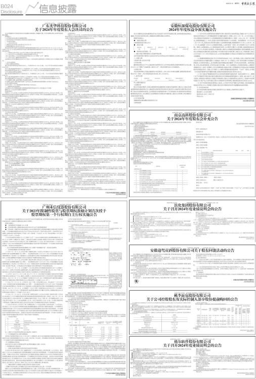 广东光华科技股份有限公司 关于2024年年度股东大会决议的公告 |