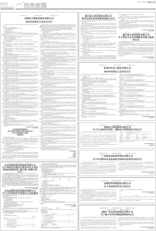 杭州中恒电气股份有限公司 2024年度股东大会决议公告 |