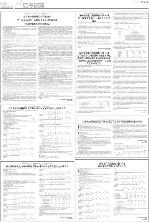 本公司董事会及全体董事保证本公告内容不存在任何虚假记载、误导性陈述或者重大遗漏,并对其内容的真实性、准确性和完整性承担法律责任。 重要内容提示: ● 本次会议是否有否决议案:无 一、会议召开和出席情况 (一)股东大会召开的时间:2025年5月15日 (二)股东大会召开的地点:浙江盛洋科技股份有限公司(以下简称“公司”)行政楼会议室(浙江省绍兴市越城区人民东路1416号) (三)出席会议的普通股股东和恢复表决权的优先股股东及其持有股份情况: ■ (四)表决方式是否符合《公司法》及《公司章程》的规定,大会主持情况等。 本次股东大会由公司董事会召集,董事长叶利明先生主持会议,会议采用现场投票和网络投票相结合的方式表决。本次会议的召集、召开和表决方式、表决程序符合《公司法》及《公司章程》的有关规定。 (五)公司董事、监事和董事会秘书的出席情况 1.公司在任董事9人,出席9人; 2.公司在任监事3人,出席3人; 3.董事会秘书申杰峰先生出席本次会议;公司高管列席本次会议。 二、议案审议情况 (一)非累积投票议案 1.议案名称:《2024年度董事会工作报告》 审议结果:通过 表决情况: ■ 2.议案名称:《2024年度监事会工作报告》 审议结果:通过 表决情况: ■ 3.议案名称:《2024年年度报告及摘要》 审议结果:通过 表决情况: ■ 4.议案名称:《2024年度财务决算报告》 审议结果:通过 表决情况: ■ 5.议案名称:《2024年度利润分配预案》 审议结果:通过 表决情况: ■ 6.议案名称:《关于续聘2025年度公司审计机构的议案》 审议结果:通过 表决情况: ■ 7.议案名称:《关于2025年度公司申请银行综合授信额度的议案》 审议结果:通过 表决情况: ■ 8.议案名称:《关于2025年度预计为控股子公司提供担保的议案》 审议结果:通过 表决情况: ■ 9.议案名称:《关于2025年度公司使用闲置自有资金购买理财产品的议案》 审议结果:通过 表决情况: ■ (二)现金分红分段表决情况 ■ (三)涉及重大事项,5%以下股东的表决情况 ■ (四)关于议案表决的有关情况说明 本次股东大会表决方式符合《公司法》等法律法规和《公司章程》的规定,所审议议案属普通决议议案,已经出席本次股东大会二分之一以上有表决权的股份同意通过。 三、律师见证情况 1.本次股东大会见证的律师事务所:北京市康达律师事务所 律师:郭备、周倩 2.律师见证结论意见: 本次会议的召集和召开程序、召集人和出席人员资格、表决程序和表决结果符合《公司法》《股东会规则》等法律、行政法规、部门规章、其他规范性文件及《公司章程》的规定,均为合法有效。 特此公告。 浙江盛洋科技股份有限公司 董事会 2025年5月16日