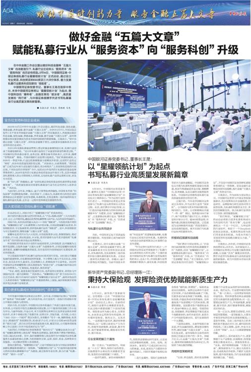 ● 本报记者 刘英杰 5月16日,中国银河证券党委书记、董事长王晟在“中国银河证券·中国证券报私募行业星耀领航计划”启动仪式上致辞表示:“作为证券行业的先行者之一,中国银河证券见证并深度参与了私募行业从萌芽到壮大的全过程。此次,我们携手中国证券报,以‘打造国内最具影响力的科创类私募赋能平台’为愿景,启动‘星耀领航计划’,正是要推动私募行业从‘服务资本’向‘服务科创’升级,从‘自我成长’向‘生态赋能’跃迁。” 与私募行业共同进步 当前,中国经济正处于高质量发展关键阶段,科技创新已成为破局的核心动力。 王晟表示,党中央提出金融“五篇大文章”,将科技金融置于首位,要求金融体系全方位支持科创企业成长,而私募机构,尤其是聚焦二级市场的科技主题私募和量化私募,正是这一使命的天然践行者。伴随AI、量子计算等技术的爆发,当前中国资本市场“科技叙事”的逻辑愈发清晰,私募行业也正迎来历史性机遇,私募机构与科创企业的紧密联动正在重塑行业竞争逻辑。 “作为证券行业的先行者之一,中国银河证券见证并深度参与了私募行业从萌芽到壮大的全过程。”王晟在谈及中国银河证券与私募行业的发展历程时表示,过去十年,中国私募行业管理规模不断跃升,量化私募、科创投资等新兴力量快速崛起,中国银河证券也从早期为私募机构提供基础交易通道,到如今构建涵盖资金对接、策略孵化、技术赋能、生态共建的全链条服务体系,中国银河证券始终是私募行业高质量发展坚定的同行者。 王晟介绍,今年是中国银河证券成立25周年,作为证券行业的“国家队”,公司始终与资本市场同频共振、相向而行。目前,公司积极响应共建“一带一路”倡议,服务超1800万客户,客户托管资产超5万亿元,在境内设有37家分公司、超460家营业部,在境外通过收购实现跨越发展,已发展成为亚洲网络布局最广的投资银行。这些成绩的取得,离不开我们与私募行业伙伴的紧密合作。 积极响应国家科创战略 “我们携手中国证券报,以‘打造国内最具影响力的科创类私募赋能平台’为愿景,启动‘星耀领航计划’,正是要推动私募行业从‘服务资本’向‘服务科创’升级,从‘自我成长’向‘生态赋能’跃迁。”在王晟看来,与中国证券报共同打造的“星耀领航计划”,不仅是中国银河证券深耕私募服务领域的又一里程碑,更是金融行业响应国家科创战略、践行金融“五篇大文章”的务实行动。 王晟表示,作为国有大型证券公司,中国银河证券将与中国证券报强强联合,充分发挥各自在金融资源、行业研究、品牌影响力和生态协同等方面的优势,为私募机构提供全方位、多层次的赋能支持,助力私募行业坚持守正创新、规范健康发展。 “我们相信,‘星耀领航计划’的启动必将助力更多私募机构成长为科创时代的‘资本引擎’,也必将涌现出一个又一个幻方、九坤这样的行业标杆,相信下一个DeepSeek时刻还会到来,私募机构还将为我们带来更多的惊喜,为资本市场乃至国家的科创战略贡献更大力量。”王晟说。 王晟表示,25年前,中国银河证券因改革而生;25年后,站在新起点上,中国银河证券将以专业能力服务国家战略,以金融“活水”灌溉实体经济,携手共进书写私募基金行业高质量发展的新篇章,助力中国资本市场长期稳定健康发展。