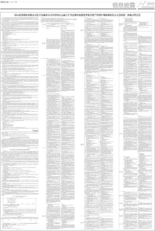 国元证券股份有限公司关于以通讯方式召开国元元赢六个月定期开放债券型集合资产管理计划份额持有人大会的第二次提示性公告