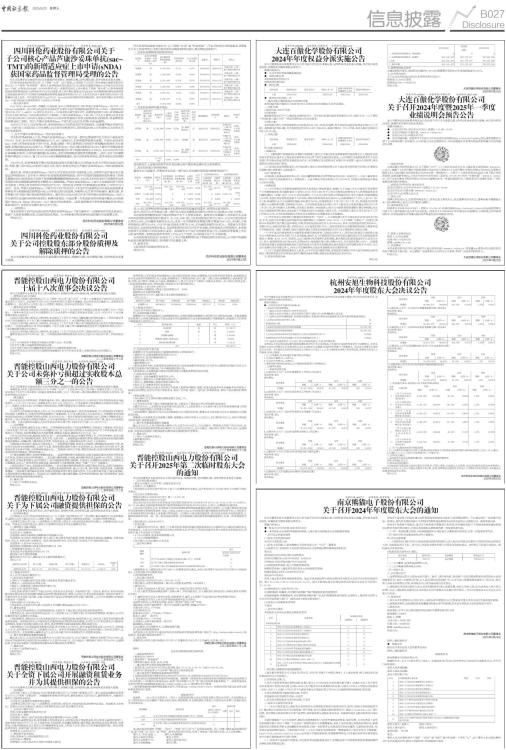大连百傲化学股份有限公司 2024年年度权益分派实施公告 |