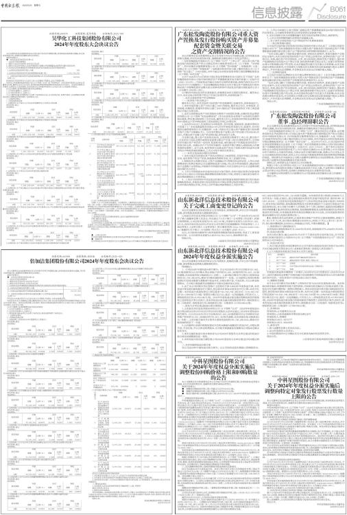 本公司董事会及全体董事保证本公告内容不存在任何虚假记载、误导性陈述或者重大遗漏,并对其内容的真实性、准确性和完整性承担法律责任。 重要内容提示: ● 本次会议是否有否决议案:无 一、会议召开和出席情况 (一)股东会召开的时间:2025年5月22日 (二)股东会召开的地点:公司8号会议室 (三)出席会议的普通股股东和恢复表决权的优先股股东及其持有股份情况: ■ (四)表决方式是否符合《公司法》及《公司章程》的规定,大会主持情况等。 本次股东会由公司董事会召集,董事长张文生先生主持,会议采用现场投票和网络投票相结合的表决方式进行表决。本次会议的召集、召开程序、表决方式和表决程序均符合《公司法》及《公司章程》的有关规定,会议合法有效。 (五)公司董事、监事和董事会秘书的出席情况 1、公司在任董事7人,出席7人; 2、公司在任监事3人,出席3人; 3、董事会秘书薛运普先生出席了本次会议;其他高管列席了本次会议。 二、议案审议情况 (一)非累积投票议案 1、议案名称:《倍加洁2024年度董事会工作报告》 审议结果:通过 表决情况: ■ 2、议案名称:《倍加洁2024年度监事会工作报告》 审议结果:通过 表决情况: ■ 3、议案名称:《倍加洁2024年年度报告及摘要》 审议结果:通过 表决情况: ■ 4、议案名称:《关于2024年度拟不进行利润分配暨关于提请股东会授权董事会制定2025年中期分红方案的议案》 审议结果:通过 表决情况: ■ 5、议案名称:《关于续聘2025年度审计机构、内部控制审计机构的议案》 审议结果:通过 表决情况: ■ 6、议案名称:《关于2025年度公司及控股子公司申请授信额度并提供担保的议案》 审议结果:通过 表决情况: ■ 7、议案名称:《关于开展外汇套期保值业务的议案》 审议结果:通过 表决情况: ■ 8、议案名称:《关于2024年日常关联交易确认及2025年日常关联交易预计的议案》 审议结果:通过 表决情况: ■ 9、议案名称:《关于使用闲置自有资金进行委托理财的议案》 审议结果:通过 表决情况: ■ 10、议案名称:《关于2024年内部董事薪酬的确认及2025年薪酬方案的议案》 审议结果:通过 表决情况: ■ 11、议案名称:《关于2024年外部董事薪酬的确认及2025年薪酬方案的议案》 审议结果:通过 表决情况: ■ 12、议案名称:《关于2024年独立董事薪酬的确认及2025年薪酬方案的议案》 审议结果:通过 表决情况: ■ 13、议案名称:《关于2024年监事薪酬的确认及2025年薪酬方案的议案》 审议结果:通过 表决情况: ■ 14、议案名称:《关于计提资产减值准备的议案》 审议结果:通过 表决情况: ■ 15、15.01议案名称:《关于修订〈独立董事津贴制度〉的议案》 审议结果:通过 表决情况: ■ 16、15.02议案名称:《关于修订〈对外担保管理制度〉的议案》 审议结果:通过 表决情况: ■ (二)现金分红分段表决情况 ■ (三)涉及重大事项,5%以下股东的表决情况 ■ (四)关于议案表决的有关情况说明 1、本次股东会议案4、5、8、10、11、12为对中小投资者单独计票的议案。 2、本次股东会采用现场投票与网络投票相结合的表决方式通过了全部议案。 3、本次股东会议案8、10为涉及关联股东回避表决的议案,公司控股股东、实际控制人张文生先生回避表决。 三、律师见证情况 1、本次股东大会见证的律师事务所:国浩律师(上海)事务所 律师:宣伟华、孙芳尘 2、律师见证结论意见: 本所律师确认,本次股东会的召集与召开程序、召集人与出席股东会人员资格、股东会的表决程序与表决方式符合《中华人民共和国公司法》、《上市公司股东会规则》等法律、法规、规范性文件及《倍加洁集团股份有限公司章程》的规定,表决结果合法、有效。 特此公告。 倍加洁集团股份有限公司董事会 2025年5月23日