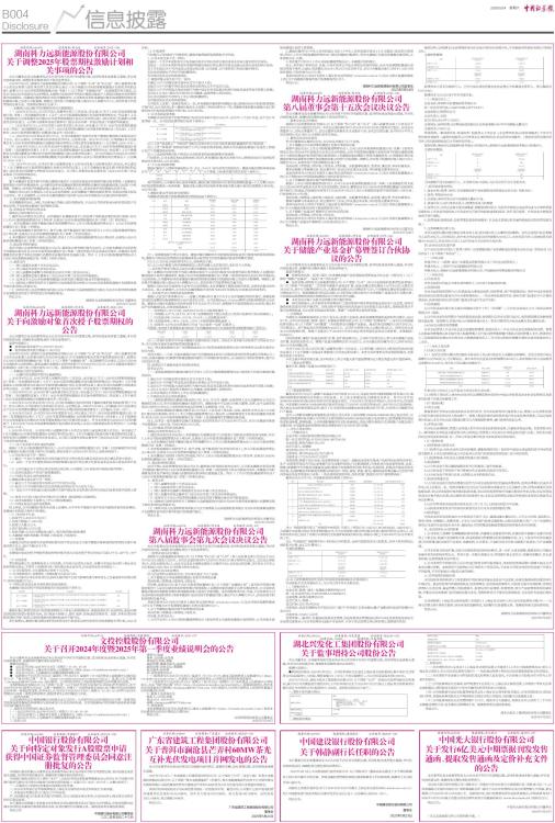 证券代码:600478 证券简称:科力远 公告编号:2025-038 湖南科力远新能源股份有限公司 关于调整2025年股票期权激励计划相关事项的公告 本公司董事会及全体董事保证本公告内容不存在任何虚假记载、误导性陈述或者重大遗漏,并对其内容的真实性、准确性和完整性承担个别及连带责任。 2025年5月23日,湖南科力远新能源股份有限公司(以下简称“公司”或“科力远”)第八届董事会第十五次会议和第八届监事会第九次会议审议通过《关于调整2025年股票期权激励计划相关事项的议案》,根据公司《2025年股票期权激励计划(草案)》(以下简称“本激励计划”)及其摘要的有关规定,以及公司2024年年度股东大会的授权,本激励计划首次授予的部分激励对象因个人原因自愿放弃拟获授的部分股票期权,1名激励对象因离职不再符合激励条件,公司董事会将前述激励对象的股票期权份额在其他激励对象之间进行分配调整。调整后,首次授予的激励对象人数由154人调整为153人,拟首次授予的股票期权总量不变。现将相关事项公告如下: 一、本激励计划已履行的决策程序和信息披露情况 (一)2025年4月21日,公司召开第八届董事会第十三次会议,审议通过《关于〈2025年股票期权激励计划(草案)〉及其摘要的议案》、《关于〈2025年股票期权激励计划实施考核管理办法〉的议案》、《关于提请股东大会授权董事会办理2025年股票期权激励计划有关事项的议案》,相关事项已经薪酬与考核委员会审议通过。公司第八届董事会独立董事专门会议2025年第一次会议发表了同意的审核意见。 (二)2025年4月21日,公司召开第八届监事会第七次会议,审议通过《关于〈2025年股票期权激励计划(草案)〉及其摘要的议案》、《关于〈2025年股票期权激励计划实施考核管理办法〉的议案》、《关于核实〈2025年股票期权激励计划激励对象名单〉的议案》。 (三)2025年4月22日至2025年5月1日,公司对本激励计划拟首次授予激励对象的姓名和职务进行了公示。在公示期内,公司监事会均未收到任何异议,无反馈记录。2025年5月10日,公司披露《科力远监事会关于2025年股票期权激励计划激励对象名单的公示情况说明及核查意见》(公告编号:2025-030)。 (四)2025年5月20日,公司召开2024年年度股东大会,审议通过《关于〈2025年股票期权激励计划(草案)〉及其摘要的议案》、《关于〈2025年股票期权激励计划实施考核管理办法〉的议案》、《关于提请股东大会授权董事会办理2025年股票期权激励计划有关事项的议案》。并与本次股东大会决议公告同时披露了《科力远关于2025年股票期权激励计划内幕信息知情人买卖公司股票情况的自查报告》(公告编号:2025-034)。 (五)2025年5月23日,公司召开第八届董事会第十五次会议及第八届监事会第九次会议,审议通过了《关于调整2025年股票期权激励计划相关事项的议案》、《关于向激励对象首次授予股票期权的议案》,相关事项已经薪酬与考核委员会审议通过。公司第八届董事会独立董事专门会议2025年第三次会议发表了同意的审核意见。 二、本次调整情况 鉴于本激励计划首次授予的部分激励对象因个人原因自愿放弃拟获授的部分股票期权,1名激励对象因离职不再符合激励条件,公司董事会将前述激励对象的股票期权份额在其他激励对象之间进行分配调整。调整后,首次授予的激励对象人数由154人调整为153人,拟首次授予的股票期权总量不变。 根据公司2024年年度股东大会有关决议的授权,本次调整属于授权范围内事项,无需再次提交股东大会审议。除上述调整外,公司本次实施的激励计划内容与2024年年度股东大会通过的内容相符。 三、本次调整事项的影响 本次调整事项合法、合规,不会影响公司核心团队的稳定性,不会对公司的财务状况和经营成果产生重大影响,不会影响本激励计划的继续实施。 四、法律意见书的结论性意见 湖南启元律师事务所认为: 1、截至本法律意见书出具日,本次激励计划调整及授予已经取得了现阶段必要的批准与授权,符合《上市公司股权激励管理办法》等法律、法规及《2025年股票期权激励计划(草案)》的 相关规定。 2 、本次对激励计划授予激励对象名单的调整符合《上市公司股权激励管理办法》 《2025年股票期权激励计划(草案)》的规定。 3、本次股权激励计划的授予日、授予对象、授予数量和行权价格均符合《上市公司股权激励管理办法》等法律、法规及《2025年股票期权激励计划(草案)》的相关规定。 4、本次激励计划的授予条件已经成就,符合《上市公司股权激励管理办法》等法律、法规及《2025年股票期权激励计划(草案)》的相关规定。 五、独立财务顾问意见 深圳市他山企业管理咨询有限公司认为:截至独立财务顾问报告出具日,公司和本激励计划首次授予的激励对象均符合《2025年股票期权激励计划(草案)》规定的授予所必须满足的条件,本激励计划的调整及首次授予事项已经履行必要的审议程序和信息披露义务,符合《上市公司股权激励管理办法》《2025年股票期权激励计划(草案)》的相关规定。 六、备查文件 (一)第八届董事会第十五次会议决议; (二)第八届监事会第九次会议决议; (三)第八届董事会薪酬与考核委员会2025年第三次会议决议; (四)第八届董事会独立董事专门会议2025年第三次会议的审核意见; (五)监事会关于2025年