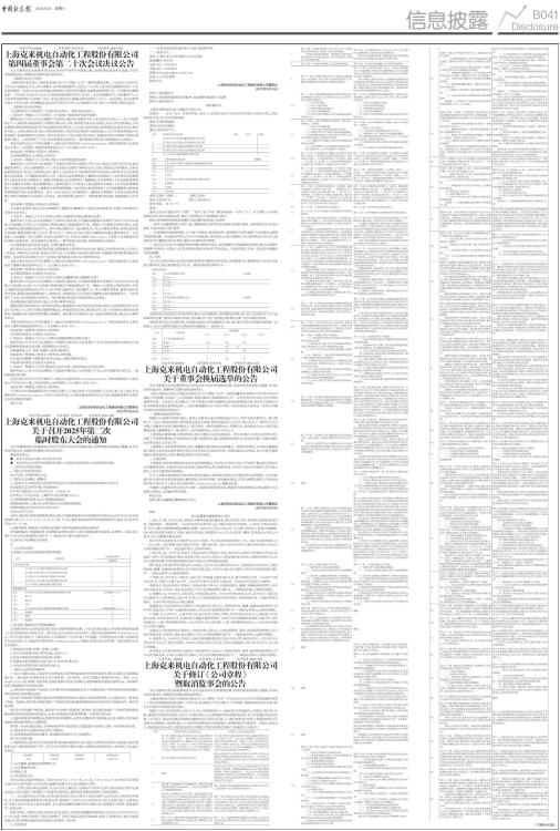证券代码:603960 证券简称:克来机电 公告编号:2025-025 上海克来机电自动化工程股份有限公司 第四届董事会第二十次会议决议公告 本公司董事会及全体董事保证本公告内容不存在任何虚假记载、误导性陈述或者重大遗漏,并对其内容的真实性、准确性和完整性承担法律责任。 一、董事会会议召开情况 上海克来机电自动化工程股份有限公司(以下简称“公司”)第四届董事会第二十次会议于2025年5月17日以电邮送达方式,向全体董事、监事和高级管理人员发出“公司关于召开第四届董事会第二十次会议的通知”,并将有关会议材料通过电邮的方式送达所有董事、监事和高级管理人员。公司第四届董事会第二十次会议于2025年5月23日以现场和通讯相结合的方式召开。会议应到董事7人,实到董事7人,公司监事和高级管理人员列席了会议。本次出席会议人数超过董事总数的二分之一,表决有效。会议由董事长谈士力先生主持,本次董事会会议的召开符合《中华人民共和国公司法》和《公司章程》的有关规定。 二、董事会会议审议情况 与会董事对以下事项进行了认真讨论并表决,一致形成决议如下: 1、审议并一致通过了《关于修订〈公司章程〉暨取消监事会的议案》 董事长谈士力先生向与会者阐述了议案的主要内容,根据《中华人民共和国公司法》《上市公司章程指引》《上海证券交易所股票上市规则》等法律、法规、规范性文件的有关规定,结合公司实际情况,公司拟调整内部监督机构设置,将不再设置监事会和监事,《公司法》规定的监事会的职权由董事会审计委员会行使,《上海克来机电自动化工程股份有限公司监事会议事规则》也相应废止,公司各项治理制度中涉及监事会、监事的规定不再适用。同时公司拟对《上海克来机电自动化工程股份有限公司章程》的部分条款进行修订。与会者进行了讨论,经全体董事认真审议,一致同意通过该议案,并提请股东大会审议。 具体内容详见公司于同日披露于上海证券交易所网站(www.sse.com.cn)及指定媒体的《克来机电关于修订〈公司章程〉暨取消监事会的公告》(公告编号:2025-026)。 表决结果:7票赞成,0票反对,0票弃权。 本议案尚需提交公司股东大会审议。 2、审议并一致通过了《关于修订部分公司治理制度的议案》 董事长谈士力先生向与会者阐述了议案的主要内容,根据《中华人民共和国公司法》及中国证监会最新发布的《上市公司章程指引》《上市公司股东会规则》等相关法律、法规、规范性文件的要求,为契合最新监管导向、促进公司规范化运作、提升公司治理水平、切实维护股东合法权益,同时结合公司经营发展的实际需要,公司董事会拟修订公司《股东大会议事规则》《董事会议事规则》《审计委员会议事规则》《提名委员会议事规则》《薪酬与考核委员会议事规则》《战略委员会议事规则》《信息披露管理制度》《内幕信息知情人登记管理制度》《董事会秘书工作细则》《独立董事议事规则》《对外担保管理制度》《关联交易决策制度》《募集资金使用管理制度》《投资者关系管理制度》《信息披露暂缓与豁免业务管理制度》等15项治理制度。其中,公司《股东大会议事规则》《董事会议事规则》《关联交易决策制度》的修订尚需提交公司股东大会审议。经全体董事认真审议,一致同意通过该议案,并提请股东大会审议。 表决结果:7票赞成,0票反对,0票弃权。 本议案中涉及的《股东大会议事规则》《董事会议事规则》《关联交易决策制度》的修订尚需提交公司股东大会审议。 3、审议并一致通过了《关于选举公司第五届董事会非独立董事的议案》 董事长谈士力先生向与会者阐述了议案的主要内容,公司第四届董事会任期将于2025年6月26日届满,公司依据《公司法》《公司章程》等相关规定开展换届选举工作。根据《公司章程》的相关规定,目前公司董事会成员架构拟设定为7人,其中非独立董事4人、独立董事3人。经公司董事会推荐,董事会提名委员会审核,董事会提名谈士力先生、曹卫红女士、李明先生为公司第五届董事会非独立董事候选人。公司设职工代表董事一名,已由职工代表大会选举产生(详见公告编号:2025-023),与非职工代表董事共同组成第五届董事会。经全体董事认真审议,一致同意通过该议案,并提请股东大会审议。 本议案经提名委员会审议通过,并提交董事会审议。 提名委员会认为:本次提名的非独立董事候选人提名程序合法合规,候选人任职资格符合《公司法》《证券法》等相关法律法规、规范性文件以及《公司章程》规定的任职条件,具备履行董事职责的能力和素质。提名委员会同意将上述三名非独立董事候选人提交公司董事会审议 具体内容详见公司于同日披露于上海证券交易所网站(www.sse.com.cn)及指定媒体的《克来机电关于董事会换届选举的公告》(公告编号:2025-027)。 表决结果:7票赞成,0票反对,0票弃权。 本议案尚需提交公司股东大会审议。 4、审议并一致通过了《关于选举公司第五届董事会独立董事的议案》 董事长谈士力先生向与会者阐述了议案的主要内容,公司第四届董事会任期将于2025年6月26日届满,公司依据《公司法》《公司章程》等相关规定开展换届选举工作。根据《公司章程》的相关规定,目前公司董事会成员架构拟设定为7人,其中非独立董