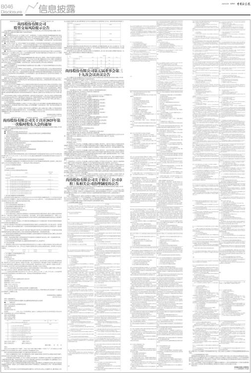 证券代码:603333 证券简称:尚纬股份 公告编号:临2025-033 尚纬股份有限公司 股票交易风险提示公告 本公司董事会及全体董事保证本公告内容不存在任何虚假记载、误导性陈述或者重大遗漏,并对其内容的真实性、准确性和完整性承担个别及连带责任。 重要内容提示: ● 尚纬股份有限公司(以下简称“公司”)股票连续三个交易日内收盘价格涨幅偏离值累计超过20%,根据《上海证券交易所交易规则》等有关规定,属于股票交易异常波动的情形。自5月22日以来,累计涨幅达到61.03%,同期上证指数同比下跌1.41%,公司股票涨幅显著高于同期上证指数,TTM为306.3显著高于同行业上市公司,股票交易价格存在较大波动。公司特别提醒广大投资者注意二级市场交易风险,理性决策,审慎投资。 ● 公司已于2025 年 4月26日披露了2024年度报告,公司2024年度实现归属于上市公司股东的净利润1634.29万元,同比下降20.06%。公司2024年度实现归属于上市公司股东的扣除非经常性损益的净利润865.77万元,同比下降31.05%。主要原因是国内电线电缆行业整体面临周期性需求收缩与行业竞争加剧,同时因公司前实际控制人涉及刑事案件,公司在销售收入、重点项目推进及员工稳定性等方面受到一定程度的冲击。 ● 2025年5月24日公司披露了《关于公司股东所持部分股份司法拍卖完成过户暨公司实际控制人变更的公告》(公告编号:2025-026),公司控股股东由李广胜变更为福华通达化学股份公司(以下简称“福华化学”),实际控制人由李广胜变更为张华。 一、二级市场交易风险提示 公司股票连续三个交易日内收盘价格涨幅偏离值累计超过20%,根据《上海证券交易所交易规则》等有关规定,属于股票交易异常波动的情形。自5月22日以来,累计涨幅达到61.03%,同期上证指数同比下跌1.41%,公司股票涨幅显著高于同期上证指数,TTM为306.3显著高于同行业上市公司,股票交易价格存在较大波动。公司特别提醒广大投资者注意二级市场交易风险,理性决策,审慎投资。 二、公司经营风险提示 截至本公告披露日,公司市场环境或行业政策未发生重大调整、生产成本和销售等情况亦未出现大幅波动、内部经营秩序正常。 公司已于2025年4月26日披露了2024年度报告,公司2024年度实现归属于上市公司股东的净利润1634.29万元,同比下降20.06%。公司2024年度实现归属于上市公司股东的扣除非经常性损益的净利润865.77万元,同比下降31.05%。主要原因是国内电线电缆行业整体面临周期性需求收缩与行业竞争加剧,同时因公司前实际控制人涉及刑事案件,公司在销售收入、重点项目推进及员工稳定性等方面受到一定程度的冲击。 三、公司主营业务及生产经营未发生重大变化 截至目前,公司主营业务为特种电缆的生产及销售,主营业务及生产经营未发生重大变化。公司生产经营活动一切正常,内部生产经营秩序正常,基本面没有发生重大变化,主营业务结构未发生重大变化,内外部经营环境未发生重大变化。 四、重大事项风险提示 公司于2025年5月24日披露《关于公司股东所持部分股份司法拍卖完成过户暨公司实际控制人变更的公告》(公告编号:2025-026)、《尚纬股份有限公司详式权益变动报告书》和《尚纬股份有限公司简式权益变动报告书》,公司控股股东由李广胜变更为福华化学,实际控制人由李广胜变更为张华。根据已披露的《尚纬股份有限公司详式权益变动报告书》及福华化学确认,在符合相关法律法规的前提下,以及支持上市公司现有电缆业务正常经营的情况下,在未来12个月内,增加电子化学品以及相应的双氧水、硫酸业务,能否顺利增加该业务以及该业务发展尚存在不确定性,短期内对公司经营活动不会产生重大影响。 本次实际控制人变更,公司的正常经营管理、主营业务不会发生变化。除公司公告的《尚纬股份有限公司详式权益变动报告书》(福华通达化学股份公司)中载明的事项外,不存在影响公司股票交易价格异常波动的重大事宜,不存在其他应披露而未披露的重大信息,包括但不限于重大资产重组、发行股份、上市公司收购、债务重组、业务重组、资产剥离和资产注入等重大事项。 五、其他风险提示 鉴于公司股票短期内涨幅较大,明显大于行业内大部分公司,股价剔除大盘和板块整体因素后的实际波动幅度较大,后续股票可能存在较大风险,公司郑重提醒广大投资者充分了解二级市场交易风险,审慎决策,理性投资。 公司将根据《公司法》、《证券法》等有关法律、法规的要求,真实、准确、及时、完整、公平地向投资者披露有可能影响公司股票价格的重大信息。公司郑重提醒广大投资者:本公司所有信息均以在指定信息披露媒体和上海证券交易所网站(www.sse.com.cn)刊登的正式公告为准。 特此公告。 尚纬股份有限公司董事会 二○二五年五月二十九日 证券代码:603333 证券简称:尚纬股份 公告编号:2025-032 尚纬股份有限公司关于召开2025年第一次临时股东大会的通知 本公司董事会及全体董事保证本公告内容不存在任何虚假记载、误导性陈述或者重大遗漏,并对其内容的真实性、准确性和完整性承担法律责任。 重要内容提示: ● 股东大会召开日期:2025年6月13日 ● 本次股东大会采用的网络投票系统:上海证券交易所股东大会网络投票系统 一、召开会议的基本情况 (一)股东大会类型和届次 2025年第一次临时股东大会 (