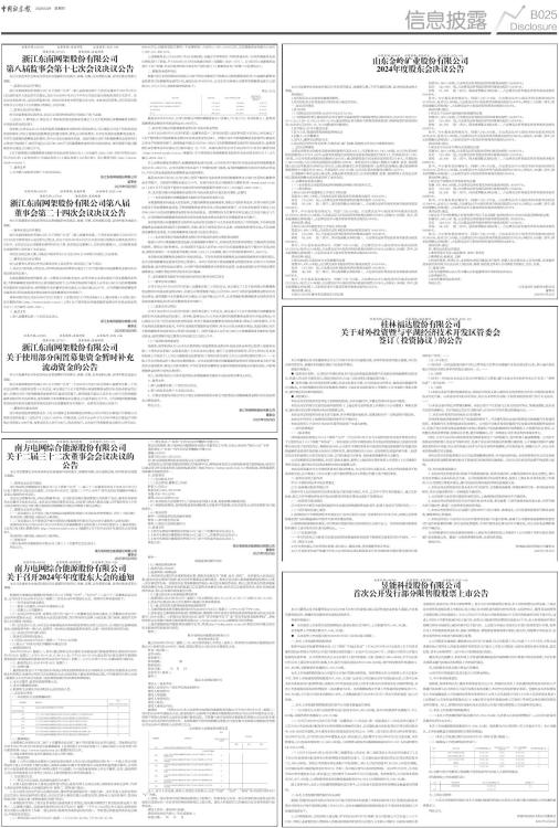 证券代码:003035 证券简称:南网能源 公告编号:2025-025 南方电网综合能源股份有限公司 关于二届三十二次董事会会议决议的公告 本公司及董事会全体成员保证信息披露内容的真实、准确和完整,没有虚假记载、误导性陈述或重大遗漏。 一、董事会会议召开情况 南方电网综合能源股份有限公司(以下简称“公司”)二届三十二次董事会会议于2025年5月19日以电子邮件形式发出会议通知,于2025年5月28日(星期三)下午2:30在广州市天河区华穗路6号楼会议室以现场的方式召开。 会议应出席董事9名,实际出席董事9名。公司监事及部分高级管理人员列席了会议,董事长宋新明先生召集并主持本次会议。本次会议为临时董事会会议,会议参与表决人数及召集、召开程序符合《中华人民共和国公司法》和《南方电网综合能源股份有限公司章程》等有关规定。 二、董事会会议审议情况 (一)审议通过《关于制定〈南方电网综合能源股份有限公司尽职免责管理规定(试行)〉的议案》 表决结果:9票同意、0票反对、0票弃权。 (二)审议通过《关于提请召开南方电网综合能源股份有限公司2024年年度股东大会的议案》 具体内容详见公司2025年5月29日在指定信息披露媒体《证券时报》《中国证券报》《上海证券报》《证券日报》和巨潮资讯网(http://www.cninfo.com.cn)披露的《关于召开2024年年度股东大会的通知》。 表决结果:9票同意、0票反对、0票弃权。 三、备查文件 《南方电网综合能源股份有限公司二届三十二次董事会会议决议》。 特此公告。 南方电网综合能源股份有限公司 董事会 2025年5月29日 证券代码:003035 证券简称:南网能源 公告编号:2025-026 南方电网综合能源股份有限公司 关于召开2024年年度股东大会的通知 本公司及董事会全体成员保证信息披露的内容真实、准确、完整,没有虚假记载、误导性陈述或重大遗漏。 根据南方电网综合能源股份有限公司(以下简称“公司”、“本公司”)二届三十二次董事会会议决议,公司决定于2025年6月25日(星期三)召开2024年年度股东大会。现将有关事项通知如下: (一)召开会议的基本情况 (一)股东大会届次:2024年年度股东大会 (二)召集人:公司董事会 (三)会议召开的合法性、合规性:经公司二届三十二次董事会会议审议通过,公司董事会决定召开2024年年度股东大会。本次股东大会会议的召集、召开符合相关法律、行政法规、部门规章、规范性文件和《公司章程》的规定。 (四)会议召开方式:本次会议采取现场表决和网络投票相结合的方式召开,公司股东应选择现场表决、网络投票中的一种方式,如果同一表决权出现重复投票表决的,以第一次投票表决结果为准。 (五)会议召开的日期、时间 1、现场会议的时间及地点 (1)时间:2025年6月25日(星期三)下午15:30开始 (2)地点:广州市天河区华穗路6号楼会议室 2、网络投票时间 2025年6月25日(星期三),其中:通过深圳证券交易所交易系统进行网络投票的具体时间为2025年6月25日(星期三)上午9:15-9:25、9:30-11:30,下午13:00-15:00;通过深圳证券交易所互联网投票系统进行网络投票的具体时间为2025年6月25日(星期三)上午9:15至下午15:00期间的任意时间。 (六)股权登记日:2025年6月18日(星期三) (七)出席对象 1、截至股权登记日下午收市时在中国证券登记结算有限责任公司深圳分公司登记在册的本公司的股东均有权以本通知公布的方式出席股东大会;股东因故不能出席现场会议的,可书面委托代理人出席(被委托人不必为本公司股东)或在网络投票时间内参加网络投票; 2、本公司董事、监事和高级管理人员; 3、本公司聘请的律师; 4、根据相关法规应当出席股东大会的其他人员。 二、会议审议事项 (一)本次股东大会提案编码表: ■ (二)提案情况 上述提案已分别经公司二届三十次董事会会议和二届十四次监事会会议审议通过,具体情况详见公司于2025年3月29日在指定信息披露媒体《证券时报》《中国证券报》《上海证券报》《证券日报》和巨潮资讯网(http://www.cninfo.com.cn)披露的相关公告。 公司独立董事将在本次年度股东大会上进行述职。 (三)特别说明 根据《上市公司股东会规则》《深圳证券交易所上市公司自律监管指引第1号一一主板上市公司规范运作》及《公司章程》等相关规定,提案4.00和6.00属于涉及影响中小投资者利益的重大事项,公司将对中小投资者的表决结果进行单独计票并予以披露(中小投资者是指除上市公司董事、监事、高级管理人员以及单独或者合计持有公司5%以上股份的股东以外的其他股东)。 三、会议登记方法 (一)登记方式以现场、信函或传真的方式进行 1、自然人股东需持本人身份证原件进行登记;委托代理人出席会议的,需持股东身份证原件、代理人身份证原件和股东大会授权委托书(附件三)原件进行登记; 2、法人股东由法定代表人出席会议的,需持营业执照复印件(加盖公章)、法定代表人身份证明和法定代表人身份证原件进行登记;由法定代表人委托代理人出席会议的,需持本人身份证原件、营业执照复印件(加盖公章)和授权委托书进行登记; 3、异地股东可凭以上有关证件采取信函或传真方式登记,股东请仔细填写《参会股东登记表》(附件二),以便登记确认。信函或传真须在2025年6月23日(星期一)下午17:30之前以专人送达、邮寄或传真方式到公司董事会工作部(登记时间以收到传