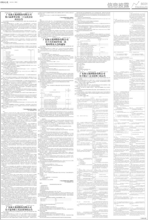 证券代码:002311 证券简称:海大集团 公告编号:2025-027 广东海大集团股份有限公司 第六届董事会第二十五次会议 决议公告 本公司及董事会全体成员保证信息披露的内容真实、准确、完整,没有虚假记载、误导性陈述或重大遗漏。 广东海大集团股份有限公司(以下简称“公司”)第六届董事会第二十五次会议于2025年5月29日在广州市番禺区公司会议室以现场及通讯表决相结合的方式召开,本次会议由公司董事长薛华先生召集和主持,会议通知于2025年5月24日以专人递送、传真、电子邮件等方式送达给全体董事、监事和总经理。本次会议应参加会议董事七人,实际参加会议董事七人;公司董事会秘书列席本次会议。本次会议的召集、召开符合《中华人民共和国公司法》和《公司章程》的有关规定。 经与会董事认真审议,本次会议以回收表决票的表决方式逐项表决通过了以下决议: 一、以7票赞成、0票反对、0票弃权的表决结果审议通过了《关于修订〈公司章程〉的议案》。 为贯彻落实最新法律法规要求,进一步完善公司治理,提升公司规范运作水平,根据《上市公司章程指引(2025年修订)》《上市公司治理准则(2025年修订)》《上市公司独立董事管理办法(2025年修正)》等相关规定,结合公司实际情况,拟对《公司章程》的部分条款进行修订。 详见公司指定信息披露媒体《证券时报》《中国证券报》《上海证券报》《证券日报》和巨潮资讯网(http://www.cninfo.com.cn)披露的《关于修订〈公司章程〉的公告》,公告编号:2025-028。 本议案尚需提交公司股东大会审议。 二、以7票赞成、0票反对、0票弃权的表决结果审议通过了《关于修订公司部分制度的议案》。 为进一步促进公司规范运作,建立健全内部治理机制,公司根据《公司法》等法律法规、规范性文件的最新规定,结合公司自身实际情况,拟修订公司部分内部治理制度,具体拟修订的制度清单如下表: ■ 注:《股东大会议事规则》更名为《股东会议事规则》;《募集资金专项储备及使用管理制度》更名为《募集资金管理制度》;《董事、监事和高级管理人员薪酬管理制度》更名为《董事和高级管理人员薪酬管理制度》 上述制度的主要修订内容详见公司指定信息披露媒体巨潮资讯网(http://www.cninfo.com.cn)披露的《部分制度修订对照表》。 本议案尚需提交公司股东大会审议。 三、以7票赞成、0票反对、0票弃权的表决结果审议通过了《关于〈公司未来三年(2025-2027年)分红回报规划〉的议案》 详见公司指定信息披露媒体巨潮资讯网(http://www.cninfo.com.cn)披露的《公司未来三年(2025-2027年)分红回报规划》。 本议案尚需提交公司股东大会审议。 四、以7票赞成、0票反对、0票弃权的表决结果审议通过了《关于董事会换届选举的议案》。 鉴于公司第六届董事会将届满到期,公司董事会需进行换届选举。根据拟修订的《公司章程》规定,公司第七届董事会由7名董事组成,其中非独立董事4名(含1名职工代表董事),独立董事3名。 公司于2025年5月20日在指定信息披露媒体披露了《关于董事会换届选举的提示性公告》,截至提名截止日2025年5月22日,公司仅收到公司控股股东广州市海灏投资有限公司(以下简称“海灏投资”)提名薛华先生、许英灼先生为董事会候选人的提名书。 根据《公司法》《主板上市公司规范运作》《公司章程》等有关规定,公司控股股东海灏投资提名的薛华先生、许英灼先生和董事会提名的沈东先生、殷战先生、谭劲松先生及李纯厚先生共6人作为公司第七届董事会候选人(简历详见附件),其中殷战先生、谭劲松先生及李纯厚先生3人为第七届董事会独立董事候选人。 经公司董事会提名委员会审核,上述6名候选人均符合董事的任职资格,其中3名独立董事候选人任职资格也符合《上市公司独立董事管理办法》关于独立董事任职资格的要求。且该6名候选人均具有丰富的专业知识和经验。 上述董事候选人中,将兼任公司高级管理人员以及由职工代表担任的董事人数总计不超过公司董事总数的二分之一。 3名独立董事候选人任职资格经深圳证券交易所审核无异议后,将与其他3名非独立董事候选人一并提交股东大会审议,并将采取累积投票制对上述董事候选人进行逐项表决。上述董事候选人当选后,将与公司职工代表大会选举的职工代表董事钱雪桥先生一起组成公司第七届董事会。 第七届董事会董事任期3年,自股东大会审议通过之日起生效。 本议案尚需提交公司股东大会审议。 五、以7票赞成、0票反对、0票弃权的表决结果审议通过了《关于召开2025年第二次临时股东大会的议案》。 详见公司指定信息披露媒体《证券时报》《中国证券报》《上海证券报》《证券日报》和巨潮资讯网(http://www.cninfo.com.cn)披露的《关于召开2025年第二次临时股东大会的通知》,公告编号:2025-030。 特此公告。 广东海大集团股份有限公司董事会 二O二五年五月三十日 附件 一、薛华先生,1970年生,硕士学位,工程师。1992年毕业于华中农业大学水产学院特种水产养殖专业;1995年获中山大学生命科学院动物学硕士学位。先后担任广东省乡村振兴促进会副会长、广东省饲料行业协会副会长、广东省无抗饲料产业联盟副理事长、广东省农业产业化龙头企业协会副会长、广州市工商联第十六届执行委员会副主席、广州市慈善会副会长、广