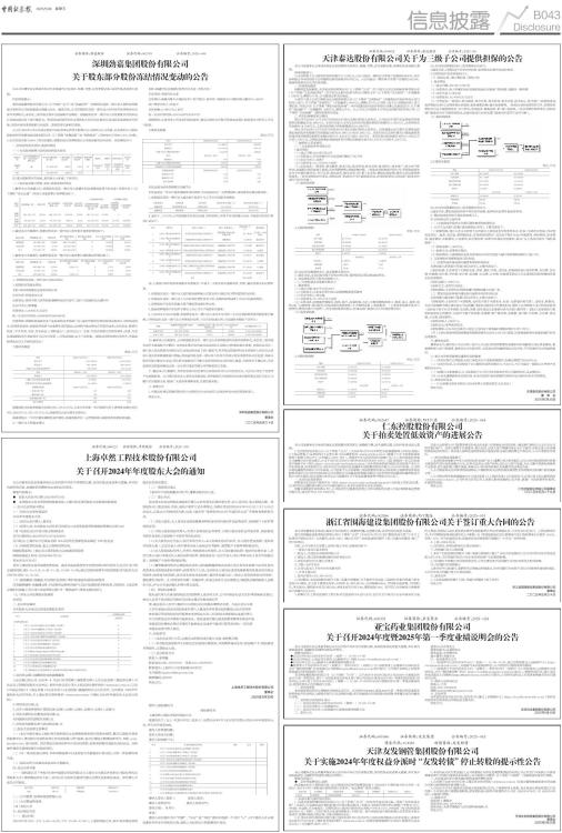 本公司及董事会全体成员保证信息披露的内容真实、准确、完整,没有虚假记载、误导性陈述或重大遗漏。 特别风险提示: 深圳劲嘉集团股份有限公司(以下简称“公司”或“劲嘉股份”)控股股东及其一致行动人质押股份数量占其所持公司股份数量比例超过80%。截至目前,公司控股股东及其一致行动人所持有的质押股份均为场外质押形式,未涉及二级市场交易平仓或强制平仓情形。控股股东及其一致行动人涉及借款合同的诉讼以及被法院出具了执行裁定书,若后续法院最终判决支持债权人相关诉讼请求以及法院采取强制执行措施,则部分股份或将面临司法处置。请投资者注意相关风险。 公司于2025年5月29日通过查询中国证券登记结算有限责任公司深圳分公司系统,以及接到公司控股股东深圳市劲嘉创业投资有限公司(以下简称“劲嘉创投”或“控股股东”,目前持有公司463,089,709股,占公司总股本的31.90%)的书面通知,劲嘉创投已质押的部分公司股份被司法再冻结。具体情况如下: 一、控股股东股份质押、冻结的情况 (一)本次股份新增司法再冻结的基本情况 ■ 注:部分数据若存在尾差,系四舍五入所致,下表亦同。 (二)股东股份累计质押、冻结、轮候冻结的情况 1、截至本公告披露之日,控股股东及其一致行动人新疆世纪运通股权投资合伙企业(有限合伙)(以下简称“世纪运通”)所持公司股份累计质押情况如下: ■ 2、截至本公告披露日,劲嘉创投及其一致行动人股份累计被冻结情况如下: ■ 3、截至本公告披露日,劲嘉创投及其一致行动人股份累计被轮候冻结情况如下: ■ 二、控股股东及其一致行动人的基本情况 1、控股股东的基本情况 名称:深圳市劲嘉创业投资有限公司 企业性质:有限责任公司 注册地址:深圳市南山区粤海街道麻岭社区科技中二路19号劲嘉科技大厦1601 法定代表人:陈零越 注册资本:3,000万元人民币 统一社会信用代码:91440300750482408E 经营范围:直接投资高新技术产业和其他技术创新产业;受托管理和经营其他创业投资公司的创业资本;投资咨询业务;直接投资或参与企业孵化器的建设;法律和行政法规允许的其他业务;国内商业、物资供销业(不含专营、专控、专卖商品);货物进出口、技术进出口(法律、行政法规禁止的项目除外;法律、行政法规限制的项目须取得许可后方可经营)。日用品销售;电子产品销售。(除依法须经批准的项目外,凭营业执照依法自主开展经营活动) 主要财务数据 单位:万元 ■ 劲嘉创投当前各类借款总余额为435,575.07万元,未来半年内和一年内需偿付的上述债务金额分别为302,240.07万元、435,575.07万元;劲嘉创投已发行债券余额为0。 劲嘉创投近一年存在债务逾期及违约情形,劲嘉创投存在一定偿债风险,请投资者注意投资风险。 2、一致行动人的基本情况 名称:新疆世纪运通股权投资合伙企业(有限合伙) 企业性质:有限合伙企业 注册地址:新疆乌鲁木齐高新技术产业开发区(新市区)高新街258号数码港大厦2015-499号 执行事务合伙人:乔鲁予 合伙份额:2,800万元人民币 统一社会信用代码:916501007525287727 经营范围:从事对非上市企业的股权投资、通过认购非公开发行股票或者受让股权等方式持有上市公司股份。 主要财务数据 单位:万元 ■ 世纪运通当前各类借款总余额为0。 世纪运通近一年存在债务逾期及违约情形,世纪运通存在一定偿债风险,请投资者注意投资风险。 3、控股股东及其一致行动人最近两年经审计与上市公司关联交易情况 ■ 4、最近十二个月内,公司控股股东及世纪运通、实际控制人乔鲁予涉及的重大诉讼、仲裁及司法执行事项汇总如下: ■ 注:上述部分案件的涉案金额未考虑原告(申请人)主张的部分逾期利息、罚息、复利及相关诉讼费用等。 5、控股股东及其一致行动人进行股份质押融入的资金用于满足其日常经营的资金需求。 6、控股股东及其一致行动人不存在非经营性资金占用、违规担保等侵害上市公司利益的情形。 7、质押股份不涉及负担重大资产重组等业绩补偿义务。 8、股份质押融资不涉及用于满足上市公司生产经营相关需求。 9、以2025年5月28日起算,控股股东及其一致行动人未来半年内和一年内分别到期的质押股份累计数量、占控股股东及其一致行动人所持股份比例、占公司总股本比例、对应融资余额如下表所示: ■ 10、截至本公告披露日,公司控股股东及其一致行动人所质押股份均为场外质押形式,未涉及二级市场交易平仓或强制平仓情形。本次股东部分股份被司法再冻结未导致公司控制权发生变更。控股股东及其一致行动人涉及借款合同的诉讼以及被法院出具了执行裁定书,若后续法院最终判决支持债权人相关诉讼请求以及法院采取强制执行措施,则劲嘉创投及其一致行动人所持有的部分股份或将面临司法处置,该部分股份后续可能发生变动,司法机关强制执行可能引发相关股份变动的时间、数量、价格存在不确定性,司法处置涉及的股份数量达到一定比例可能会导致公司控制权发生变更。 11、截至本公告披露日,本次股东部分股份被司法再冻结事项与公司经营无关,不会对公司生产经营等产生直接影响。公司将持续关注上述事项进展情况,并督促相关方依照相关法律法规的规定及时告知公司履行信息披露义务,敬请广大投资者谨慎决策,注意投资风险。 三、备查文件 1、中国