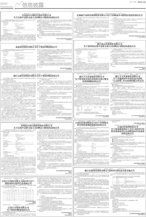 证券代码:000550 证券简称:江铃汽车 公告编号:2025-027 200550 江铃B 江铃汽车股份有限公司2025年5月产、销情况的自愿性信息披露公告 本公司及董事会全体成员保证信息披露的内容真实、准确和完整,没有虚假记载、误导性陈述或重大遗漏。 江铃汽车股份有限公司2025年5月产、销快讯数据如下: ■ 江铃汽车股份有限公司 董事会 2025年6月4日 证券代码:000550 证券简称:江铃汽车 公告编号:2025-028 200550 江铃B 江铃汽车股份有限公司 关于股份回购进展的公告 本公司及董事会全体成员保证信息披露内容的真实、准确和完整,没有虚假记载、误导性陈述或重大遗漏。 江铃汽车股份有限公司(以下简称:“公司”)于2025年4月10日至4月11日召开书面董事会,审议通过了《关于回购公司A股股份的议案》。本次回购资金来源为公司自有资金,回购股份的资金总额不低于人民币1.5亿元(含)且不超过人民币2亿元(含),回购价格不超过人民币22.00元/股(含),具体回购数量以回购期限届满时实际回购的股份数量为准,本次回购的股份将用于实施公司员工持股计划或股权激励。具体内容详见公司在《中国证券报》、《证券时报》、巨潮资讯网(http://www.cninfo.com.cn)披露的相关公告。 一、回购股份的进展情况 根据《上市公司股份回购规则》和《深圳证券交易所上市公司自律监管指引第9号一一回购股份》等相关规定。现将公司股份回购的进展情况公告如下: 截至2025年5月31日,公司通过股份回购专用证券账户以集中竞价方式回购公司股份4,513,700股,占公司目前总股本的0.5229%,最高成交价为20.00元/股,最低成交价为18.86元/股,成交金额87,773,583元(不含交易费用)。公司回购进展情况符合相关法律法规的要求,符合既定的回购股份方案。 二、其他说明 1、公司未在下列期间内回购公司股票: (1)自可能对公司股票交易价格产生重大影响的重大事项发生之日或者在决策过程中,至依法披露之日内; (2)中国证监会和深圳证券交易所规定的其他情形。 2、公司以集中竞价交易方式回购股份符合下列要求: (1)委托价格不得为公司股票当日交易涨幅限制的价格; (2)不得在深圳证券交易所开盘集合竞价、收盘集合竞价及股票价格无涨跌幅限制的交易日内进行股份回购的委托; (3)中国证监会和深圳证券交易所规定的其他要求。 公司后续将根据市场情况在回购实施期限内实施本次回购计划,并将按规定履行信息披露义务,敬请广大投资者注意投资风险。 特此公告。 江铃汽车股份有限公司 董事会 2025年6月4日