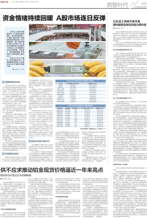 6月4日,A股市场继续反弹,三大股指均高开高走,创业板指涨逾1%,大消费、固态电池、光模块等板块表现活跃。Wind数据显示,整个A股市场近4000只股票上涨,逾80只股票涨停,成交额为1.18万亿元,32只股票在4日创历史新高。资金面上,资金情绪回暖,沪深300主力资金净流入超30亿元。 分析人士认为,在国内一系列政策支持下,市场调整空间有限,6月A股市场仍处于修复行情窗口期。 ● 本报记者 吴玉华 大消费板块掀起涨停潮 A股市场在6月首个交易日反弹后,6月4日高开高走,继续反弹。截至6月4日收盘,上证指数、深证成指、创业板指、科创50指数、北证50指数分别上涨0.42%、0.87%、1.11%、0.45%、1.10%,上证指数报收3376.20点,创业板指报收2024.93点。 权重股与小微盘股携手走强,大盘股集中的上证50指数、沪深300指数分别上涨0.13%、0.43%,小微盘股集中的中证1000指数、中证2000指数、万得微盘股指数分别上涨0.88%、1.06%、1.20%。 当日A股成交额为1.18万亿元,较前一个交易日增加136亿元,其中沪市成交额为4468.45亿元,深市成交额为7062.03亿元。整个A股市场上涨股票数为3963只,86只股票涨停。 从盘面上看,大消费、固态电池、光模块等板块表现活跃。申万一级行业中,多数行业板块上涨,美容护理、综合、纺织服饰行业涨幅居前,分别上涨2.63%、2.53%、2.41%;仅有交通运输、国防军工、公用事业行业下跌,跌幅分别为0.58%、0.24%、0.12%。 大消费板块表现活跃,掀起涨停潮。美容护理板块中的水羊股份、洁雅股份涨逾11%,诺邦股份、豪悦护理涨停;纺织服饰板块中的曼卡龙涨逾17%,迪阿股份上涨13%,莱绅通灵、萃华珠宝、菜百股份、潮宏基涨停;商贸零售板块中的若羽臣、国芳集团涨停;社会服务板块中的长白山、峨眉山A涨停。 国金证券可选消费首席分析师赵中平表示,坚定持有业绩兑现度较高的新消费龙头。积极拥抱新消费赛道或具备新消费思维的传统赛道优质公司,中小企业更容易通过改革入局新消费,中远期有望兑现为估值业绩的戴维斯双击。 32只股票创历史新高 随着A股市场连日反弹,Wind数据显示,6月4日共有32只股票创下历史新高,来自银行、医药生物、食品饮料行业的个股数量居前,分别为7只、5只、3只。从风格角度上看,有江苏银行、中信银行等多只属于红利风格的股票,也有迪哲医药-U、诺诚健华-U、百利天恒等多只成长股。 资金面上,6月4日,在A股市场个股多数上涨的情况下,资金情绪回暖明显,沪深300主力资金净流入超30亿元。 Wind数据显示,6月4日沪深两市主力资金净流出2.61亿元,较前一个交易日大幅减少,其中沪深300主力资金净流入32.95亿元。沪深两市出现主力资金净流入的股票数为2401只,出现主力资金净流出的股票数为2720只。值得注意的是,6月3日、6月4日沪深两市主力资金净流出金额连续大幅减少,这意味着资金情绪持续回暖。 行业板块方面,6月4日申万一级行业中有13个行业出现主力资金净流入,其中电子、通信、电力设备行业主力资金净流入金额居前,分别为22.99亿元、13.48亿元、11.00亿元。在出现主力资金净流出的18个行业中,国防军工、医药生物、汽车行业主力资金净流出金额居前,分别为13.23亿元、11.40亿元、9.81亿元。 个股方面,6月4日,沪电股份、中际旭创、乐普医疗、东方财富、天孚通信主力资金净流入金额居前,分别为5.39亿元、3.97亿元、3.97亿元、3.78亿元、3.37亿元。千红制药、掌趣科技、比亚迪、云内动力、联化科技主力资金净流出金额居前,分别为4.96亿元、4.14亿元、3.14亿元、2.76亿元、2.75亿元。 A股仍处于修复行情窗口期 Wind数据显示,截至6月4日,万得全A滚动市盈率为19.13倍,沪深300滚动市盈率为12.54倍,相较其他市场,A股市场估值具有性价比。 对于A股市场,中国银河证券策略首席分析师杨超表示,近期板块轮动速度加快,行情震荡格局尚未改变,市场成交额未出现明显放量,仍以存量博弈为主。外围市场仍存在较大不确定性,短期内,市场或仍维持震荡格局,关注外部关税的变化与国内政策的落地节奏。在国内一系列政策支持下,市场调整空间有限。同时,6月18日至19日陆家嘴论坛期间将发布若干重大金融政策,有望支撑市场预期,建议关注结构性机会。 “6月A股仍处于修复行情窗口期。”华西证券首席策略分析师李立峰表示,近期市场交易情绪有所回落,主要原因是外部影响因素反复。但同时,国内中长期耐心资本的力量正在壮大,监管层通过推进长期稳市机制建设,将有力支撑A股底部区间。 富荣基金基金经理李延峥认为,权益市场仍处于震荡区间,当下的波动更多源于资金面与股价的相对位置。前期热度较高的科技板块成交额占比已回落至2023年以来的阶段低位区间,市场预期也已降至低位区间,但相关产业仍处于不断向上发展阶段。科技板块或已进入中期布局节点,建议重点关注。 对于市场配置,杨超表示,把握三大主线配置机会:第一,安全边际较高的资产,在当前外部环境不确定性显著提升的背景下,业绩确定性相对较强、股息回报整体稳定的红利板块具备防御属性。第二,科技仍将是中长期的配置主线,短期内关注估值较低的细分板块。第三,政策提振下的大消费板块。 李立峰表示,适度均衡配置,建议关注贵金属、公用事业、新消费、AI应用(软件、硬件)等。主题方面,建议关注军工、并购重组等。 “把握结构性机会是当下的核心,重点关注具备中期产业逻辑