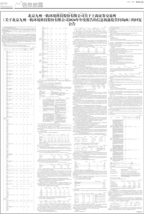 《关于北京九州一轨环境科技股份有限公司2024年年度报告的信息披露监管问询函》的回复公告