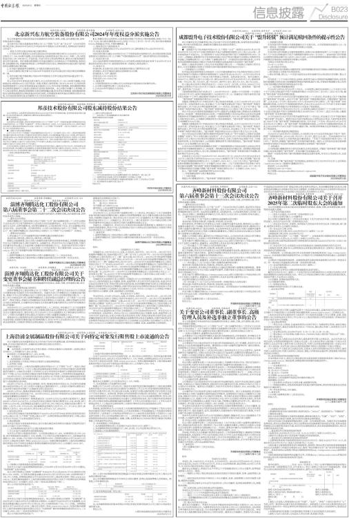 北京新兴东方航空装备股份有限公司2024年年度权益分派实施公告