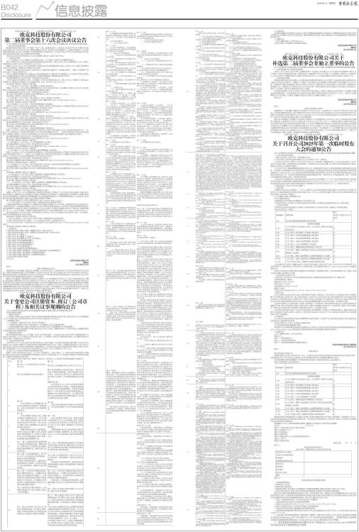 证券代码:001223 证券简称:欧克科技 公告编号:2025-037 欧克科技股份有限公司 第二届董事会第十六次会议决议公告 本公司及董事会全体成员保证信息披露的内容真实、准确、完整,没有虚假记载、误导性陈述或重大遗漏。 一、会议召开和出席情况 欧克科技股份有限公司(以下简称“公司”)第二届董事会第十六次会议于2025年6月2日以通讯方式发出会议通知,并于2025年6月12日以现场及视频方式召开。本次会议应出席董事7人,实际出席董事7人。会议由董事长胡坚晟先生主持,全体监事及全体高级管理人员列席会议。会议召开符合《中华人民共和国公司法》和《欧克科技股份有限公司公司章程》的有关规定。 本次会议采用记名投票表决方式,经与会董事认真审议,形成了如下决议: 二、议案审议情况 (一)审议通过了《关于变更公司注册资本、修订〈公司章程〉及相关议事规则的议案》; 因公司实施了资本公积金每10股转增4股的权益分派方案,总股本由66,680,000股增至93,352,000股,注册资本由人民币6,668万元变更为9,335.2万元。 根据《公司法》及《上市公司章程指引》等相关法律法规的最新修订情况,对现行《公司章程》及其附件《股东会议事规则》《董事会议事规则》进行修订。 同意将公司董事会成员人数由7人增加至9人,增加的两名董事为一名非独立董事、一名职工代表董事(将由公司职工代表大会选举产生)。 同时公司董事会提请股东大会授权公司管理层负责向公司登记机关办理修改《公司章程》所涉及的变更登记、章程备案等相关手续,相关变更最终以市场监督管理部门核准登记的内容为准。 该议案尚需提交公司2025年第一次临时股东大会审议。 《关于变更公司注册资本、修订〈公司章程〉及相关议事规则的公告》、修订后的《公司章程》《股东会议事规则》和《董事会议事规则》详见巨潮资讯网(http://www.cninfo.com.cn)。 表决结果:7票同意、0票反对、0票弃权。 (二)审议通过了《关于修订〈独立董事工作制度〉的议案》; 根据《公司法》《上市公司独立董事管理办法》等有关法律法规及《公司章程》的规定,结合本公司实际情况,公司决定对《独立董事工作制度》的有关条款进行修订。 该议案尚需提交公司2025年第一次临时股东大会审议。 修订后的《独立董事工作制度》详见巨潮资讯网(http://www.cninfo.com.cn)。 表决结果:7票同意、0票反对、0票弃权。 (三)审议通过了《关于修订〈独立董事专门会议工作制度〉的议案》; 修订后的《独立董事专门会议工作制度》详见巨潮资讯网(http://www.cninfo.com.cn)。 表决结果:7票同意、0票反对、0票弃权。 (四)审议通过了《关于修订〈对外担保管理制度〉的议案》; 根据《公司法》《深圳证券交易所股票上市规则》等有关法律法规及《公司章程》的规定,结合本公司实际情况,公司决定对《对外担保管理制度》的有关条款进行修订。 该议案尚需提交公司2025年第一次临时股东大会审议。 修订后的《对外担保管理制度》详见巨潮资讯网(http://www.cninfo.com.cn)。 表决结果:7票同意、0票反对、0票弃权。 (五)审议通过了《关于修订〈对外投资管理制度〉的议案》; 根据《公司法》《深圳证券交易所股票上市规则》等有关法律法规及《公司章程》的规定,结合本公司实际情况,公司决定对《对外投资管理制度》的有关条款进行修订。 该议案尚需提交公司2025年第一次临时股东大会审议。 修订后的《对外投资管理制度》详见巨潮资讯网(http://www.cninfo.com.cn)。 表决结果:7票同意、0票反对、0票弃权。 (六)审议通过了《关于修订〈关联交易管理制度〉的议案》; 根据《公司法》《深圳证券交易所股票上市规则》《深圳证券交易所上市公司自律监管指引第1号一一主板上市公司规范运作》《深圳证券交易所上市公司自律监管指引第7号一一交易与关联交易》等有关法律法规及《公司章程》的规定,结合本公司实际情况,公司决定对《关联交易管理制度》的有关条款进行修订。 该议案尚需提交公司2025年第一次临时股东大会审议。 修订后的《关联交易管理制度》详见巨潮资讯网(http://www.cninfo.com.cn)。 表决结果:7票同意、0票反对、0票弃权。 (七)审议通过了《关于修订〈子公司管理制度〉的议案》; 该议案尚需提交公司2025年第一次临时股东大会审议。 修订后的《子公司管理制度》详见巨潮资讯网(http://www.cninfo.com.cn)。 表决结果:7票同意、0票反对、0票弃权。 (八)审议通过了《关于修订〈募集资金使用管理制度〉的议案》; 根据《公司法》《上市公司募集资金监管规则》《深圳证券交易所股票上市规则》《深圳证券交易所上市公司自律监管指引第1号一一主板上市公司规范运作》等有关法律法规及《公司章程》的规定,结合本公司实际情况,公司决定对《对外投资管理制度》的有关条款进行修订。 该议案尚需提交公司2025年第一次临时股东大会审议。 修订后的《募集资金使用管理制度》详见巨潮资讯网(http://www.cninfo.com.cn)。 表决结果:7票同意、0票反对、0票弃权。 (九)审议通过了《关于修订〈董事、高级管理人员所持公司股份及其变动管理制度〉的议案》; 该议案尚需提交公司2025年第一次临时股东大会审议。 修订后的《董事、高级管理人员所持公司股份及其变动管理制度》详见巨潮资讯网(http://www.cninfo.com.cn)