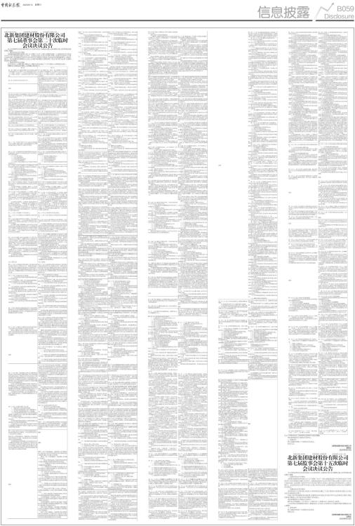 证券代码:000786 证券简称:北新建材 公告编号:2025-035 北新集团建材股份有限公司 第七届董事会第二十次临时 会议决议公告 本公司及董事会全体成员保证公告内容的真实、准确和完整,没有虚假记载、误导性陈述或者重大遗漏。 一、董事会会议召开情况 北新集团建材股份有限公司(以下简称“公司”)第七届董事会第二十次临时会议于2025年6月13日以现场结合通讯方式召开,现场会议地点为北京未来科学城七北路9号北新中心A座17层会议室。会议通知于2025年6月10日以电子邮件方式发出,本次会议应出席董事8人,实际出席8人。会议由董事长管理先生主持,公司监事和高管人员等列席了会议,符合相关法律、法规和规范性文件的规定。 二、董事会会议审议情况 会议经审议,以8票同意,0票反对,0票弃权审议通过了《关于修改公司章程的议案》。 同意对公司章程进行修订,具体修订情况如下: ■ ■ ■ ■ ■ ■ ■ ■ ■ ■ ■ ■ ■ 在以上条款变动后,原制度相应条款序号依次调整。 该议案需提交公司股东大会审议。 三、备查文件 第七届董事会第二十次临时会议决议。 特此公告。 北新集团建材股份有限公司 董事会 2025年6月13日 证券代码:000786 证券简称:北新建材 公告编号:2025-036 北新集团建材股份有限公司 第七届监事会第十五次临时 会议决议公告 本公司及监事会全体成员保证公告内容的真实、准确和完整,没有虚假记载、误导性陈述或者重大遗漏。 一、监事会会议召开情况 北新集团建材股份有限公司(以下简称“公司”)第七届监事会第十五次临时会议于2025年6月13日以现场结合通讯方式召开,现场会议地点为北京未来科学城七北路9号北新中心A座17层会议室。会议通知于2025年6月10日以电子邮件方式发出,本次会议应出席监事3人,实际出席3人。会议由监事会主席于月华女士主持,符合相关法律、法规和规范性文件以及公司章程的有关规定。 二、监事会会议审议情况 会议经审议,以3票同意,0票反对,0票弃权审议通过了《关于取消公司监事会并废止公司监事会议事规则的议案》。 同意公司不再设置监事会和监事,由董事会审计委员会行使《中华人民共和国公司法》规定的监事会职权;公司《监事会议事规则》相应废止。 该议案需提交公司股东大会审议。 截至本公告披露日,于月华女士、司艳杰女士、刘婕卉女士未持有公司股票。 三位监事在任职期间恪尽职守、勤勉尽责,公司对三位监事为公司发展所做的贡献表示衷心感谢! 三、备查文件 第七届监事会第十五次临时会议决议。 特此公告。 北新集团建材股份有限公司 监事会 2025年6月13日