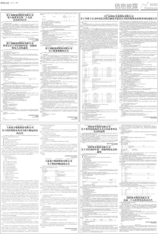 证券代码:002024 证券简称:ST易购 公告编号:2025-024 苏宁易购集团股份有限公司 第八届董事会第二十九次 会议决议公告 本公司及董事会全体成员保证信息披露的内容真实、准确、完整,没有虚假记载、误导性陈述或重大遗漏。 一、董事会会议召开情况 苏宁易购集团股份有限公司第八届董事会第二十九次会议于2025年6月10日以电子邮件方式发出会议通知,2025年6月13日在本公司会议室召开。本次会议以现场结合通讯表决方式召开。 本次会议应出席董事9人,实际出席会议董事9人,其中现场出席董事3人,以通讯表决方式出席董事5人、委托出席董事1人。董事关成华先生、贾红刚先生、曹志坚先生、张康阳先生、独立董事冯永强先生因工作原因以通讯表决方式参加了本次会议。董事沈沉女士因其他公务安排未能亲自出席本次会议,委托董事长任峻先生代为出席会议并行使表决权。 本次会议由董事长任峻先生主持,公司部分高级管理人员列席了会议,会议的召开符合《公司法》和《公司章程》的规定。 二、董事会会议审议情况 1、以9票同意、0票反对、0票弃权的结果审议通过了《关于债务和解的议案》,该议案需提交公司2025年第一次临时股东大会审议。 具体内容详见公司2025-025号《关于债务和解的公告》。 2、以9票同意、0票反对、0票弃权的结果审议通过了《关于召开2025年第一次临时股东大会的议案》。 具体内容详见公司2025-026号《董事会关于召开2025年第一次临时股东大会的通知》。 特此公告。 苏宁易购集团股份有限公司 董事会 2025年6月14日 证券代码:002024 证券简称:ST易购 公告编号:2025-026 苏宁易购集团股份有限公司 董事会关于召开2025年第一次临时 股东大会的通知 本公司及董事会全体成员保证信息披露的内容真实、准确、完整,没有虚假记载、误导性陈述或重大遗漏。 一、召开会议的基本情况 1、股东大会届次:2025年第一次临时股东大会。 2、股东大会的召集人:公司董事会。 公司第八届董事会第二十九次会议审议通过了《关于召开2025年第一次临时股东大会的议案》。 3、会议召开的合法、合规性:本次股东大会的召开符合有关法律、行政法规、部门规章、规范性文件和《公司章程》的规定。 4、会议召开的日期、时间: (1)现场会议召开日期、时间:2025年6月30日(星期一)下午14:00; (2)网络投票时间:通过深圳证券交易所交易系统进行网络投票的具体时间为2025年6月30日9:15一9:25,9:30一11:30和13:00一15:00;通过深圳证券交易所互联网投票系统投票的具体时间为2025年6月30日上午9:15至下午15:00期间的任意时间。 5、会议的召开方式: 本次股东大会采用现场表决与网络投票相结合的方式召开。公司将通过深圳证券交易所交易系统和互联网投票系统向公司股东提供网络投票方式,股东可以在网络投票时间内通过上述系统行使表决权。 本次股东大会同一表决权只能选择现场投票、深圳证券交易所交易系统投票、深圳证券交易所互联网投票系统中的一种,同一表决权出现重复表决的,以第一次有效投票结果为准。 6、股权登记日:2025年6月25日。 7、出席对象 (1)在股权登记日持有公司股份的普通股股东或其代理人。 于股权登记日2025年6月25日下午15:00收市后在中国证券登记结算有限责任公司深圳分公司登记在册的公司全体普通股股东均有权出席股东大会,并可以以书面形式委托代理人出席会议和参加表决,该股东代理人不必是本公司股东(授权委托书模板详见附件1)。 (2)公司董事、监事和高级管理人员。 (3)公司聘请的律师。 (4)根据相关法规应当出席股东大会的其他人员。 8、会议地点:南京市玄武区苏宁大道1号苏宁易购总部办公楼会议中心。 二、会议审议事项 1、本次股东大会审议提案名称: ■ 2、上述提案已经公司第八届董事会第二十九次会议审议通过。 提案1.00详见2025年6月14日巨潮资讯网(http://www.cninfo.com.cn)2025-025号《关于债务和解的公告》。 3、上述提案需经出席会议的股东(包括股东代理人)所持表决权的过半数通过。 4、根据《上市公司股东大会规则》的要求,股东大会审议影响中小投资者利益的重大事项时,对中小投资者(中小投资者是指以下股东以外的其他股东:(1)上市公司的董事、监事、高级管理人员;(2)单独或者合计持有上市公司5%以上股份的股东)的表决应当单独计票,并及时公开披露。 三、会议登记等事项 1、登记时间:2025年6月26日和27日(上午9:00-12:00,下午14:00-17:00)。 2、登记方式: (1)自然人股东须持本人身份证、股东账户卡、持股证明进行登记; (2)法人股东须持营业执照复印件(须加盖公司公章)、法定代表人授权委托书、股东账户卡、法定代表人身份证复印件(须加盖公司公章)和出席人身份证进行登记; (3)委托代理人须持本人身份证、股东签署或盖章的授权委托书、股东营业执照复印件(须加盖公司公章)或委托人身份证复印件、股东账户卡和持股凭证进行登记; (4)异地股东凭以上有关证件可以通过书面信函、邮件或传真方式办理登记。 以上材料请在上述会议登记时间结束前送达公司董秘办公室并电话确认。 3、现场登记地点:苏宁易购集团股份有限公司董秘办公室; 信函登记地址:公司董秘办公室,信函上请注明“股东大会”字样; 通讯地址:江苏省南京市玄武区苏宁大道1号苏宁易购董秘办公室; 邮编:210042; 邮箱地址:stock@su