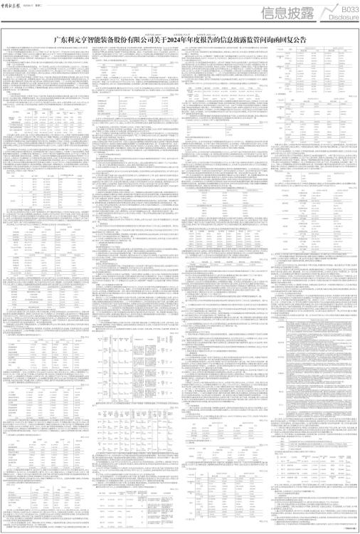 广东利元亨智能装备股份有限公司关于2024年年度报告的信息披露监管问询函回复公告