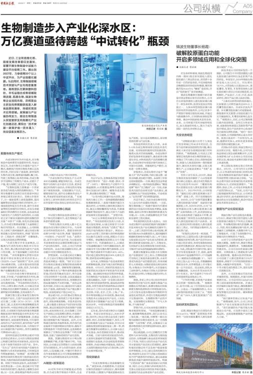 近日,工业和信息化部、国家发展改革委印发通知,部署开展生物制造中试能力建设平台培育工作。提出到2027年,力争培育20个以上中试平台,为产业规模化铺路。与此同时,生物制造领域技术突破与产业布局密集落地。高校团队在聚砜塑料回收、羊毛甾醇合成等领域取得进展,凯赛生物、锦波生物等企业加码布局,弈柯莱自主研发的燕窝酸获批准入新食品原料清单,持续拓宽技术应用领域。政策端与产业端协同发力,推动生物制造从实验室研发向规模化产业化加速迈进,展现出“技术突破—政策护航—资本涌入”的全链条发展活力。 ● 本报记者 傅苏颖 颠覆传统生产模式 合成生物学作为平台技术,在生物制造中发挥着至关重要的作用。华安证券认为,合成生物学正在重塑产业生产模式,能够执行传统生物技术难以企及的任务,同时实现了更高效、更环保的生物合成方案。随着基因编辑、酶工程、代谢工程等核心技术的突破,合成生物学不仅降低了药物生产成本,还提升了产能,使大规模工业化生产成为可能。 “生物制造能力是衡量一个国家是否成为制造大国的战略制高点。”华熙生物董事长赵燕日前在接受中国证券报记者采访时表示,其核心价值在于,它一端连接着上游底盘菌株、基因编辑等前沿基础生物科学的研究,另一端连接如何延长生命长度、提升生命质量等相关领域的应用转化,涉及生命健康和日常消费的方方面面,这也是其成为新质生产力典型代表的原因。公司最初立足于解决关键原料透明质酸的供应链“卡脖子”问题,依托先进制造能力,在合成生物领域掌握了大量围绕工程应用的技术。在此基础上,公司积极向上游和下游两端延伸。通过合成生物制造能力支持研发转化,构建“前沿科学-工程技术-消费品牌”完整链条,实现从制造到品牌的跨越。 “合成生物学并非全新概念,以酿酒为代表的传统生物技术早有应用。然而,真正推动其成为新兴产业风口的关键,在于基因编辑工具的革命性突破。”弈柯莱董事长罗煜日前在接受中国证券报记者采访时表示,CRISPR-Cas9“基因剪刀”技术,实现DNA精准切割,让原本复杂昂贵的基因操作变得简单、高效、经济,为合成生物产业爆发奠定技术基石。 “公司在合成生物学领域形成工具端、平台端、产品端的体系化布局,核心优势在于全链条技术整合能力与产业化落地经验。”华东医药相关负责人介绍,以维生素K2为例,公司通过合成生物技术优化菌种代谢路径,攻克天然菌种复杂低效难题,实现高效生产。 凯赛生物主要从事新型生物材料研发和产业化,主要产品包括系列生物法长链二元酸(DC10-DC18)、生物基戊二胺,以及系列生物基聚酰胺及其复合材料。中国证券报记者从凯赛生物获悉,公司独家开发的高性能生物基聚酰胺连续纤维增强复合材料系列产品和技术,正在用于新能源装备、交通运输轻量化、绿色建筑等领域,可在提供高性价比产品的同时,更为传统产业带来绿色低碳技术解决方案。与传统化学法石油基同类产品相比,其单位碳排放可降低50%或以上。 富邦科技副总经理周志斌对中国证券报记者表示,公司在生物农业领域已构建完善的技术创新体系,成功开发出多个具备市场竞争力的产品。其中,“天生旦”系列禾本科固氮产品聚焦生物肥料与禾本科固氮领域,可有效促进作物氮素吸收;“前锋线”系列微生物制剂则深耕生物农药与根结线虫防治领域,为根结线虫防治提供绿色解决方案。相较于传统农业技术,这些创新产品优势显著:一方面,通过减少化学肥料和农药的使用,能改善土壤微生态环境;另一方面,借助增强作物养分利用效率,可提升农业生产的可持续性。 “合成生物学对传统生产方式带来补充或颠覆,赋能传统行业。合成生物学与传统行业不是对立关系,更多是通过和传统行业结合,在特定的应用场景下体现其优势,实现低碳生产方式,赋能传统行业,提升社会整体劳动生产率,带来新的创新和成长机遇。”长城证券化工新材料首席分析师肖亚平日前在接受中国证券报记者采访时表示。 工程化转化是核心挑战 中试是生物科技创新成果向工业生产转化的关键环节,是生物制造产业体系的重要支撑。 “华熙生物在天津投入数十亿元建设合成生物中试转化平台,与全球20余所科研院校合作,链接全球科研成果与中国产业优势,构建‘基础研究-中试转化-产业应用’生态。”赵燕介绍,该平台面向行业开放,为实验室技术成果和初创企业提供规模化验证与产业化转化条件。目前,公司已与外部科研机构、企业开展关键转化项目,推动提升中国生物制造竞争力。 罗煜强调,公司通过固定化酶技术、自主设计生物反应器并推进智能化改造来突破这一瓶颈。“我们自主设计的生物反应器通过智能控制系统精准调控温度、pH值、溶解氧等关键参数,为微生物生长与产物合成构建最优微环境;同时采用集成化设计,单台设备可同步控制多个反应器,实现高通量实验场景下的参数协同优化,有效解决传统设备适配性不足的问题。”依托这类技术创新,目前公司已建成台州与重庆双生产基地,高附加值产品产能达数千吨级,双基地规划产值近20亿元。 周志斌介绍,公司在推动生物农业产业化过程中,始终致力于技术创新与迭代,采取多维度策略。在技术适应性上,建立覆盖主要农业产区的田间试验网络,通过区域适应性改良保