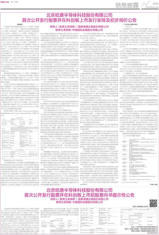 首次公开发行股票并在科创板上市发行安排及初步询价公告