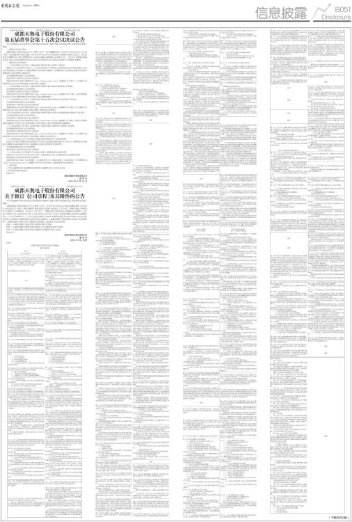 证券代码:002935 证券简称:天奥电子 公告编号:2025-022 成都天奥电子股份有限公司 第五届董事会第十五次会议决议公告 本公司及董事会全体成员保证信息披露的内容真实、准确、完整,没有虚假记载、误导性陈述或重大遗漏。 一、董事会会议召开情况 成都天奥电子股份有限公司(以下简称“公司”)第五届董事会第十五次会议于2025年6月13日以电子邮件、电话通讯等形式发出通知,并于2025年6月20日在公司会议室以现场结合通讯方式召开。本次会议应出席董事7名,实际出席董事7名,公司部分监事、高级管理人员列席了会议。会议由公司董事长赵晓虎先生主持,会议的召集和召开符合《中华人民共和国公司法》等法律法规及《公司章程》的规定。 二、董事会会议审议情况 (一)审议并通过《关于修订〈成都天奥电子股份有限公司章程〉的议案》 根据《中华人民共和国公司法》、《上市公司章程指引》等法律、法规及规范性文件的有关规定,结合公司实际情况,公司拟修订《成都天奥电子股份有限公司章程》,并提请股东大会授权公司董事会具体办理相应的工商变更登记、备案手续。 本议案尚需提交股东大会审议批准。 表决结果为:同意7票,反对0票,弃权0票 具体内容详见公司在巨潮资讯网(http://www.cninfo.com.cn)披露的《关于修订〈公司章程〉及其附件的公告》和《成都天奥电子股份有限公司章程》。 (二)审议并通过《关于修订〈成都天奥电子股份有限公司独立董事制度〉的议案》 本议案尚需提交股东大会审议批准。 表决结果为:同意7票,反对0票,弃权0票 具体内容详见公司在巨潮资讯网(http://www.cninfo.com.cn)披露的《关于修订〈独立董事制度〉的公告》和《成都天奥电子股份有限公司独立董事制度》。 (三)审议并通过《关于修订〈成都天奥电子股份有限公司股东大会议事规则〉的议案》 本议案尚需提交股东大会审议批准。 表决结果为:同意7票,反对0票,弃权0票 具体内容详见公司在巨潮资讯网(http://www.cninfo.com.cn)披露的《关于修订〈公司章程〉及其附件的公告》和《成都天奥电子股份有限公司股东会议事规则》。 (四)审议并通过《关于修订〈成都天奥电子股份有限公司股东大会网络投票实施细则〉的议案》 本议案尚需提交股东大会审议批准。 表决结果为:同意7票,反对0票,弃权0票 具体内容详见公司在巨潮资讯网(http://www.cninfo.com.cn)披露的《关于修订〈股东大会网络投票实施细则〉的公告》和《成都天奥电子股份有限公司股东会网络投票实施细则》。 (五)审议并通过《关于修订〈成都天奥电子股份有限公司董事会议事规则〉的议案》 本议案尚需提交股东大会审议批准。 表决结果为:同意7票,反对0票,弃权0票 具体内容详见公司在巨潮资讯网(http://www.cninfo.com.cn)披露的《关于修订〈公司章程〉及其附件的公告》和《成都天奥电子股份有限公司董事会议事规则》。 (六)审议并通过《关于公司向银行申请综合授信及授信项下业务的议案》 同意公司向银行申请综合授信及授信项下业务,综合授信总额不超过19,000万元,提请股东大会授权公司董事会具体办理相关事宜,授权董事长代表公司签署有关法律文件。 本议案尚需提交股东大会审议批准。 表决结果为:同意7票,反对0票,弃权0票 (七)审议并通过《关于提请召开公司2025年第一次临时股东大会的议案》 同意公司于2025年7月9日召开2025年第一次临时股东大会,审议提交股东大会的相关议案。 表决结果为:同意7票,反对0票,弃权0票 具体内容详见公司在《证券时报》、《中国证券报》、《上海证券报》、《证券日报》及巨潮资讯网(http://www.cninfo.com.cn)披露的《关于召开2025年第一次临时股东大会的通知》。 三、备查文件 1、经与会董事签字并加盖董事会印章的第五届董事会第十五次会议决议; 2、深交所要求的其他文件。 特此公告。 成都天奥电子股份有限公司 董 事 会 2025 年 6 月 20 日 证券代码:002935 证券简称:天奥电子 公告编号:2025-023 成都天奥电子股份有限公司 关于修订《公司章程》及其附件的公告 本公司及董事会全体成员保证信息披露的内容真实、准确、完整,没有虚假记载、误导性陈述或重大遗漏。 成都天奥电子股份有限公司(以下简称“公司”)于2025年6月20日召开第五届董事会第十五次会议,审议通过《关于修订〈成都天奥电子股份有限公司章程〉的议案》、《关于修订〈成都天奥电子股份有限公司股东大会议事规则〉的议案》、《关于修订〈成都天奥电子股份有限公司董事会议事规则〉的议案》,根据《中华人民共和国公司法》、中国证监会《关于新〈公司法〉配套制度规则实施相关过渡期安排》、《上市公司章程指引》、《上市公司股东会规则》等法律、法规及规范性文件的有关规定,结合公司实际情况,公司拟修订《成都天奥电子股份有限公司章程》、《成都天奥电子股份有限公司股东大会议事规则》、《成都天奥电子股份有限公司董事会议事规则》,具体修订内容详见附件。 附件一:《成都天奥电子股份有限公司章程》修订对照表 附件二:《成都天奥电子股份有限公司股东大会议事规则》修订对照表 附件三:《成都天奥电子股份有限公司董事会议事规则》修订对照表 特此公告。 成都天奥电子股份有限公司 董 事 会 2025 年 6月 20日 附件一 《成都天奥电子股份有限