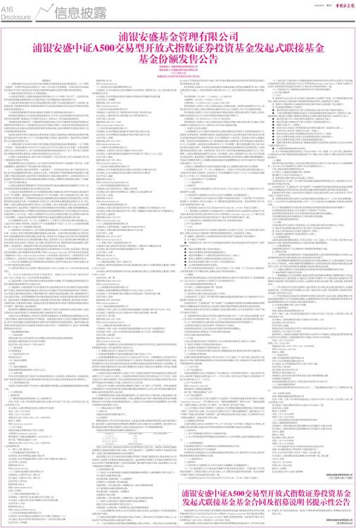 浦银安盛中证A500交易型开放式指数证券投资基金发起式联接基金基金合同及招募说明书提示性公告