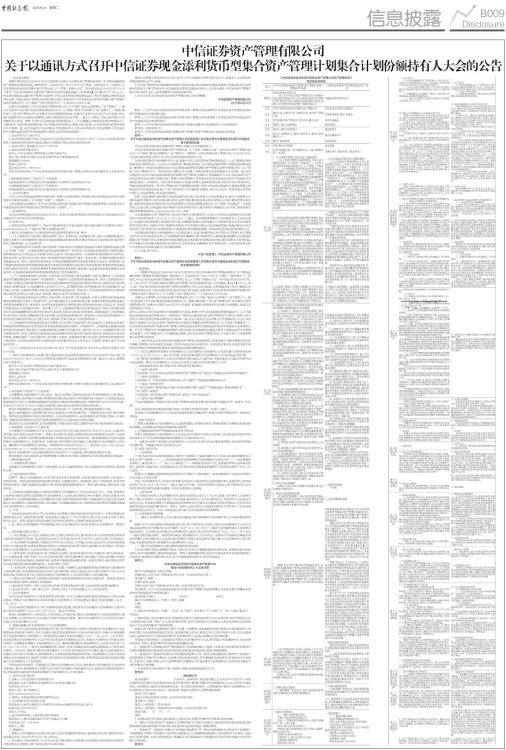 关于以通讯方式召开中信证券现金添利货币型集合资产管理计划集合计划份额持有人大会的公告