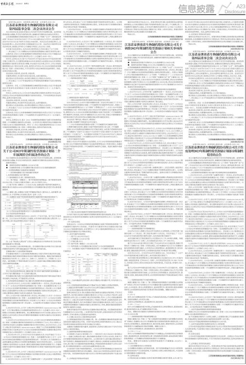 江苏诺泰澳赛诺生物制药股份有限公司关于调整2023年限制性股票激励计划相关事项的公告