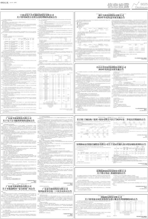 本公司董事会及全体董事保证本公告内容不存在任何虚假记载、误导性陈述或者重大遗漏,并对其内容的真实性、准确性和完整性承担个别及连带责任。 一、业务签约及销量情况 2025年1-6月,公司(包括控股子公司)共新签合同360项,累计合同金额125.1亿元,同比增长2.2%。2025年4-6月,公司(包括控股子公司)共新签合同191项,累计合同金额63.7亿元,同比增长3.7%。 2025年1-6月,公司钢结构销量83.5万吨,同比增长47.0%,其中4-6月钢结构销量45.0万吨,同比增长63.6%。 二、具体业务发展情况 单位:亿元 ■ ■ 注:公司目前无已签订尚未执行的重大项目。本公告所涉及数据尾数差异系四舍五入造成。 公司继续抓住海外市场发展机遇,加速拓展国际业务,截至二季度末,海外业务新签订单36.6亿元,同比增长94.1%,1-6月累计新签订单已超过2024年全年海外业务订单(30亿)。海外市场作为国内市场的延伸,有效弥补了国内建筑市场激烈竞争环境下对公司业务的影响,有助于公司在规模增长的同时保证订单的盈利性和回款条件。 同时,公司工业连锁及战略加盟业务继续保持高速增长,截至二季度末,新签订单9.2亿元,同比增长161.5%,且1-6月累计新签订单也已超过2024年全年工业连锁及战略加盟业务订单总额(8.5亿)。 特此公告。 长江精工钢结构(集团)股份有限公司 董事会 2025年7月9日