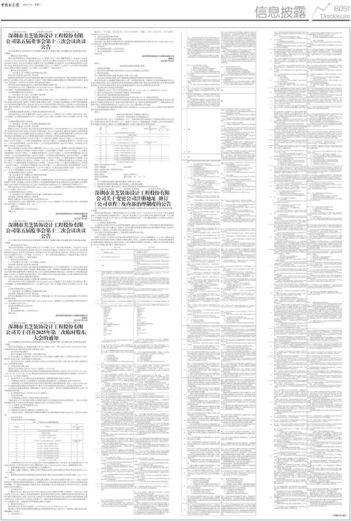 证券代码:002856 证券简称:美芝股份 公告编号:2025-043 深圳市美芝装饰设计工程股份有限 公司第五届董事会第十三次会议决议公告 本公司及董事会全体成员保证信息披露的内容真实、准确和完整,没有虚假记载、误导性陈述或重大遗漏。 一、董事会会议召开情况 深圳市美芝装饰设计工程股份有限公司(以下简称“公司”)第五届董事会第十三次会议于2025年7月15日下午在公司会议室以通讯的方式召开,本次会议的通知已于2025年7月11日以书面、电话通知及其他形式传达。本次会议由董事长召集并主持,应出席董事9名,实到9名,公司监事和高级管理人员列席了会议。本次会议召开符合《中华人民共和国公司法》(以下简称“《公司法》”)和《深圳市美芝装饰设计工程股份有限公司章程》(以下简称“《公司章程》”)的有关规定。 二、董事会会议审议情况 (一)审议通过《关于变更公司注册地址的议案》 表决结果:同意9票,反对0票,弃权0票。 根据实际情况并结合未来经营发展需要,董事会同意将公司注册地址由“深圳市福田区园岭街道华林社区八卦四路52号安吉尔大厦505”变更为“深圳市福田区梅林街道梅丰社区梅华路深华科技工业园1号厂房4层401”,同时对《公司章程》相应条款进行修订。 本次变更后的注册地址最终以工商登记机关核准的内容为准。 具体内容详见公司在巨潮资讯网(www.cninfo.com.cn)披露的《关于变更公司注册地址、修订〈公司章程〉及内部治理制度的公告》(公告编号:2025-046)。 本议案尚需提交股东大会审议。 (二)审议通过《关于修订〈公司章程〉的议案》 表决结果:同意9票,反对0票,弃权0票。 根据《公司法》《证券法》及中国证券监督管理委员会《上市公司章程指引》《上市公司股东会规则》及深圳证券交易所《股票上市规则》等相关规定,为进一步完善公司治理结构,公司将不再设置监事会,监事会职权由董事会审计委员会行使,公司《监事会议事规则》相应废止,同时鉴于公司拟变更注册地址,董事会同意对《公司章程》进行修订,并提请股东大会授权公司经营管理层办理工商变更登记等相关事宜。 本次变更及备案登记最终以工商登记机关核准的内容为准。 具体内容详见公司在巨潮资讯网(www.cninfo.com.cn)披露的《关于变更公司注册地址、修订〈公司章程〉及内部治理制度的公告》(公告编号:2025-046)以及修订后的《公司章程(2025年7月修订)》。 本议案尚需提交股东大会审议。 (三)审议通过《关于修订公司内部治理制度的议案》 表决结果:同意9票,反对0票,弃权0票。 根据《公司法》《证券法》及中国证券监督管理委员会《上市公司章程指引》《上市公司股东会规则》及深圳证券交易所《股票上市规则》等相关规定,结合公司实际情况,董事会同意修订内部治理制度,同时将《股东大会议事规则》更名为《股东会议事规则》,《董事、监事和高级管理人员所持本公司股份及其变动管理制度》更名为《董事和高级管理人员所持本公司股份及其变动管理制度》。 其中《股东会议事规则(2025年7月修订)》《董事会议事规则(2025年7月修订)》《独立董事工作细则(2025年7月修订)》《关联交易管理制度(2025年7月修订)》《募集资金管理办法(2025年7月修订)》《对外担保管理制度(2025年7月修订)》《对外投资管理制度(2025年7月修订)》尚需提交公司股东大会审议,审议通过后生效。 修订后的制度全文详见公司在巨潮资讯网(www.cninfo.com.cn)披露的《股东会议事规则(2025年7月修订)》《董事会议事规则(2025年7月修订)》《独立董事工作细则(2025年7月修订)》《关联交易管理制度(2025年7月修订)》《募集资金管理办法(2025年7月修订)》《对外担保管理制度(2025年7月修订)》《对外投资管理制度(2025年7月修订)》《投资者关系管理制度(2025年7月修订)》《董事和高级管理人员所持本公司股份及其变动管理制度(2025年7月修订)》《董事会秘书工作制度(2025年7月修订)》《董事会审计委员会工作制度(2025年7月修订)》《董事会提名委员会工作制度(2025年7月修订)》《董事会薪酬与考核委员会工作制度(2025年7月修订)》《董事会战略委员会工作制度(2025年7月修订)》《内部审计管理制度(2025年7月修订)》《内幕信息知情人登记管理制度(2025年7月修订)》《信息披露事务管理制度(2025年7月修订)》《重大信息内部报告制度(2025年7月修订)》《子公司管理制度(2025年7月修订)》《总经理工作细则(2025年7月修订)》。 本议案尚需提交股东大会审议。 (四)审议通过《关于续聘会计师事务所的议案》 表决结果:同意9票,反对0票,弃权0票。 董事会同意续聘中审亚太会计师事务所(特殊普通合伙)作为公司2025年度财务报告审计和内部控制审计机构,并提请公司股东大会授权公司经营管理层根据实际业务情况和行业标准确定审计费用报酬,2025年度审计拟收费140万元,其中:年报财务审计费用100万元、内部控制审计费用40万元。 具体内容详见公司在巨潮资讯网(www.cninfo.com.cn)披露的《关于拟续聘会计师事务所的公告》(公告编号:2025-047)。 本议案尚需提交股东大会审议。 (五)审议通过《关于提请召开2025年第二次临时股东大会的议案》 表决结果:9票同意,0票反对,0票弃权。 董事会同意召开公司2025年第二次临时股东大会。 具体内容详见公司在巨潮资讯网(www.cninfo.com.cn)披露的《关于召