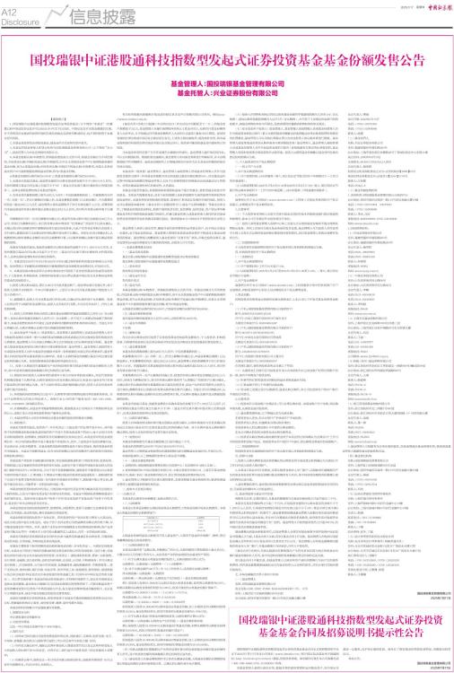 国投瑞银中证港股通科技指数型发起式证券投资基金基金份额发售公告