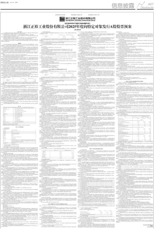 浙江正裕工业股份有限公司2025年度向特定对象发行A股股票预案
