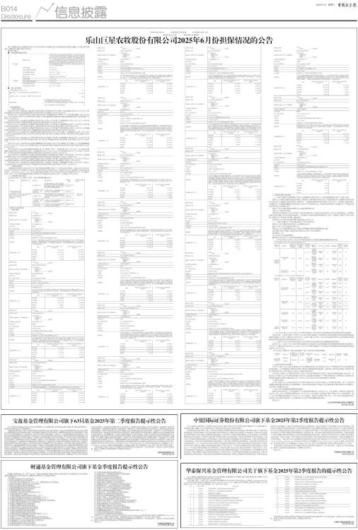 乐山巨星农牧股份有限公司2025年6月份担保情况的公告