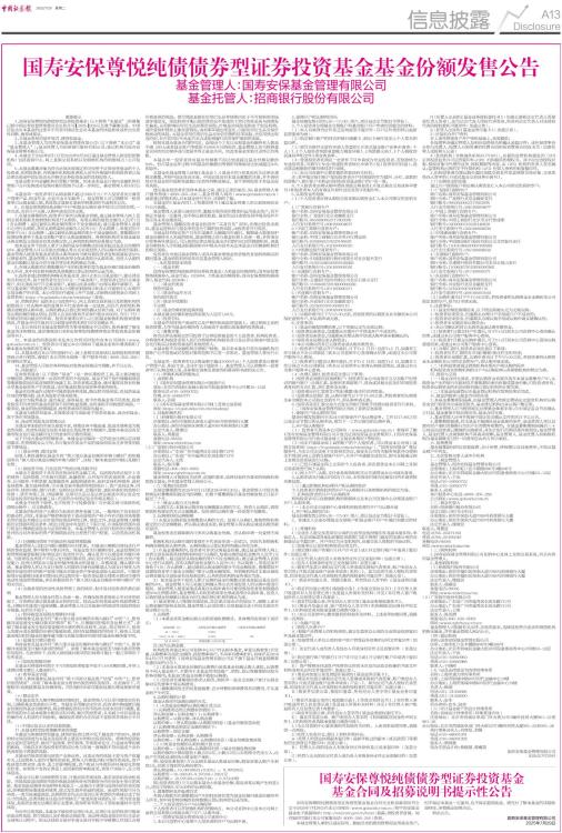 国寿安保尊悦纯债债券型证券投资基金基金份额发售公告