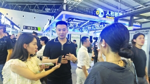 图为2025世界人工智能大会全域链接馆FUTURE TECH展区 本报记者 杨洁 摄