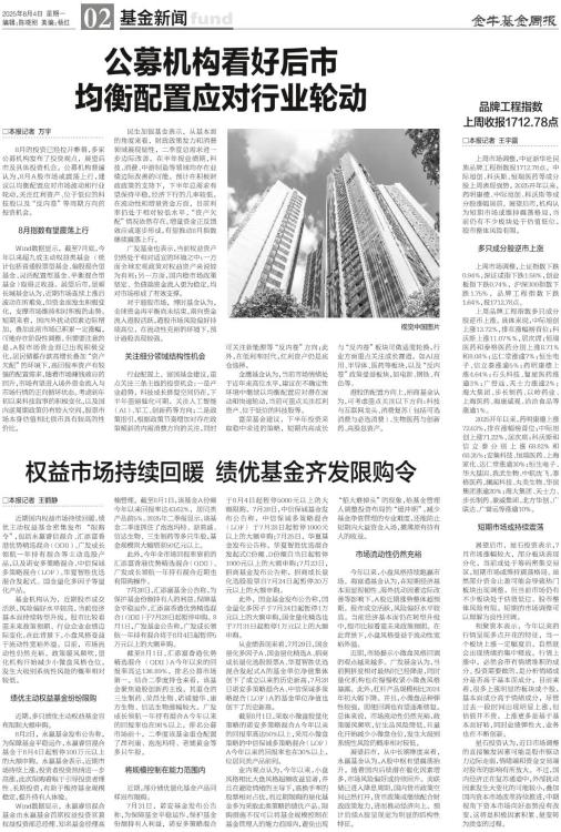 □本报记者 王鹤静 近期国内权益市场持续回暖,绩优主动权益基金密集发布“限购令”,包括永赢睿信混合、汇添富香港优势精选混合(QDII)、广发成长领航一年持有混合等主动选股产品,以及诺安多策略混合、中信保诚多策略混合(LOF)、华夏智胜优选混合发起式、国金量化多因子等量化产品。 基金机构认为,近期股市成交活跃,风险偏好水平较高。当前经济基本面持续转型升级,股市比较看重未来政策预期、行业企业业绩边际变化。在此背景下,小盘风格受益于流动性宽裕外溢。目前,市场流动性仍然充裕,政策暖风频吹,量化机构开始减少小微盘风格仓位,发生大级别系统性风险的概率相对较低。 绩优主动权益基金纷纷限购 近期,多只绩优主动权益基金宣布限制大额申购。 8月2日,永赢基金发布公告称,为保障基金平稳运作,永赢睿信混合基金于8月4日起暂停100万元以上的大额申购。永赢基金表示,近期市场持续上涨,投资者投资热情进一步高涨,此次限购着眼于引导投资者理性、长期投资,有助于维持基金规模稳定,提升持有人体验。 Wind数据显示,永赢睿信混合基金由永赢基金首席权益投资官兼权益投资部总经理、知名基金经理高楠管理。截至8月1日,该基金A份额今年以来回报率达43.62%,居同类产品前5%。2025年二季报显示,该基金二季度抓住了泡泡玛特、新易盛、信达生物、三生制药等多只牛股,基金规模则大幅增至50亿元以上。 此外,今年全市场回报率靠前的汇添富香港优势精选混合(QDII)、广发成长领航一年持有混合近期也有限购操作。 7月26日,汇添富基金公告称,为保护基金份额持有人的利益,保障基金平稳运作,汇添富香港优势精选混合(QDII)于7月28日起暂停申购。8月1日,广发基金公告称,广发成长领航一年持有混合将于8月4日起暂停5万元以上的大额申购。 截至8月1日,汇添富香港优势精选混合(QDII)A今年以来的回报率高达136.89%,排名公募市场第一。结合二季度持仓来看,该基金聚焦港股创新药主线,其重仓的三生制药、荣昌生物、诺诚健华、康方生物、信达生物涨幅较大。广发成长领航一年持有混合A今年以来的回报率也在98%以上,排名公募市场前十,二季度该基金重仓配置了昂利康、泡泡玛特、老铺黄金等多只牛股。 将规模控制在能力范围内 近期,部分绩优量化基金产品同样宣布限购。 7月31日,诺安基金发布公告称,为保障基金平稳运作,保护基金份额持有人利益,诺安多策略混合于8月4日起暂停5000元以上的大额限购。7月28日,中信保诚基金发布公告称,中信保诚多策略混合(LOF)于7月28日起暂停1000元以上的大额申购;7月25日,华夏基金发布公告称,华夏智胜优选混合发起式C份额、D份额自当日起暂停1000元以上的大额申购;7月23日,招商基金发布公告称,招商成长量化选股股票自7月24日起暂停20万元以上的大额申购。 此外,国金基金发布公告称,国金量化多因子于7月24日起暂停1万元以上的大额申购,国金量化精选也于7月31日起暂停1万元以上的大额申购。 从业绩表现来看,7月29日,国金量化多因子A、国金量化精选A、招商成长量化选股股票A、华夏智胜优选混合发起式A的基金单位净值集体创下了成立以来的历史新高,7月28日诺安多策略混合A、中信保诚多策略混合(LOF)A的基金单位净值也创下了历史新高。 截至8月1日,采取小微盘股量化策略的诺安多策略混合A今年以来的回报率高达50%以上,采用小微盘策略的中信保诚多策略混合(LOF)A今年以来的回报率也在30%以上,位居同类产品前列。 业内观点认为,今年以来,小盘风格相比大盘风格超额收益显著,并且在避险情绪的主导下,高换手率的股票相对占优,而近期限购的量化基金多为采取此类策略的绩优产品。限购措施不仅可以将基金规模控制在基金管理人的能力范围内,避免出现“船大难掉头”的现象,给基金管理人调整投资布局的“缓冲期”,减少基金净值管理的专业难度,还能防止短期内大量资金入场,摊薄原有持有人的收益。 市场流动性仍然充裕 今年以来,小盘风格持续跑赢市场。海富通基金认为,在短期经济基本面显现韧性、海外扰动因素边际改善等影响下,A股近期涨势整体超预期。股市成交活跃,风险偏好水平较高。当前经济基本面仍在转型升级中,股市比较看重未来政策预期。在此背景下,小盘风格受益于流动性宽裕外溢。 近期,市场提示小微盘风格回调的观点越来越多。广发基金认为,当前拥挤度相对最热时已经降温,同时量化机构也在慢慢收紧小微盘风格暴露。此外,杠杆产品规模相比2024年初大幅下降。并且,小微盘品种弹性较强,即使回调也有望逐渐修复。总体来说,市场流动性仍然充裕,政策暖风频吹,衍生品风险降低,且量化开始减少小微盘仓位,发生大级别系统性风险的概率相对较低。 展望后市,从中长期维度来看,永赢基金认为,A股中枢有望震荡抬升。随着国内后续潜在催化因素增多,市场风险偏好或持续回升。美联储已进入降息周期,国内货币政策空间已然打开,货币政策或继续配合财政政策发力,进而推动经济向上。预计后续A股呈现更为明显的结构性特征。